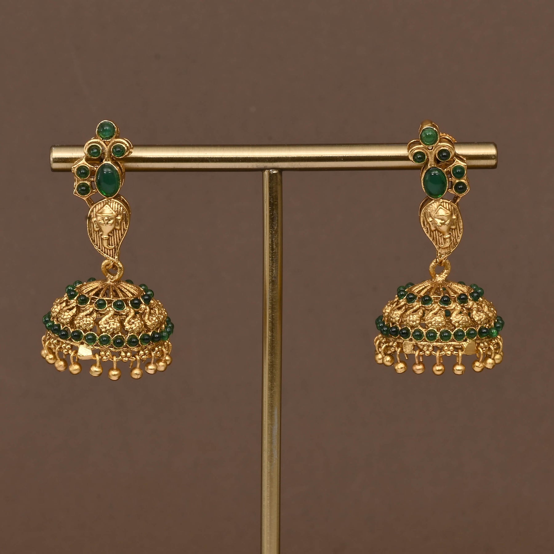 Elevate your traditional ensemble with this exquisite Temple Necklace Set, crafted in lustrous gold finish. Each piece showcases authentic nakshi artistry—intricate hand-carved detailing that reflects centuries of jewelry-making heritage. The traditional design features ornamental temple motifs, making it an ideal choice for festivals, weddings, and special occasions. Handcrafted with meticulous attention to detail, this one-of-a-kind set combines timeless elegance with artisanal craftsmanship. A statement piece that honors classical Indian jewelry aesthetics while adding sophistication to your collection.