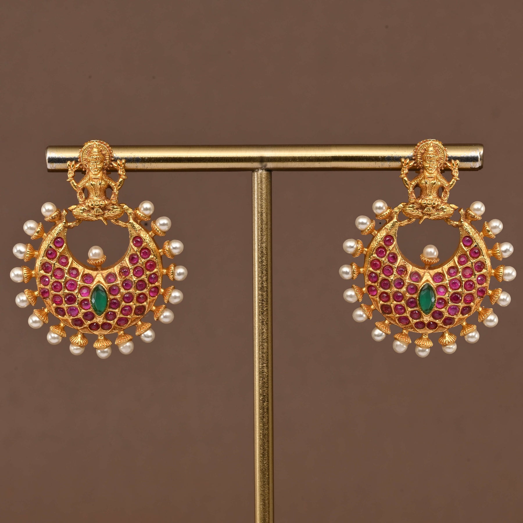 Elevate your spiritual elegance with this exquisite Temple Necklace Set, a handcrafted masterpiece inspired by Goddess Lakshmi. Each piece showcases authentic traditional design with a lustrous gold finish, capturing the divine essence of temple jewelry. Meticulously crafted by skilled artisans, this one-of-a-kind set combines timeless craftsmanship with sacred symbolism, making it an ideal choice for festivals, ceremonies, or those seeking to honor their heritage with refined, meaningful adornment.