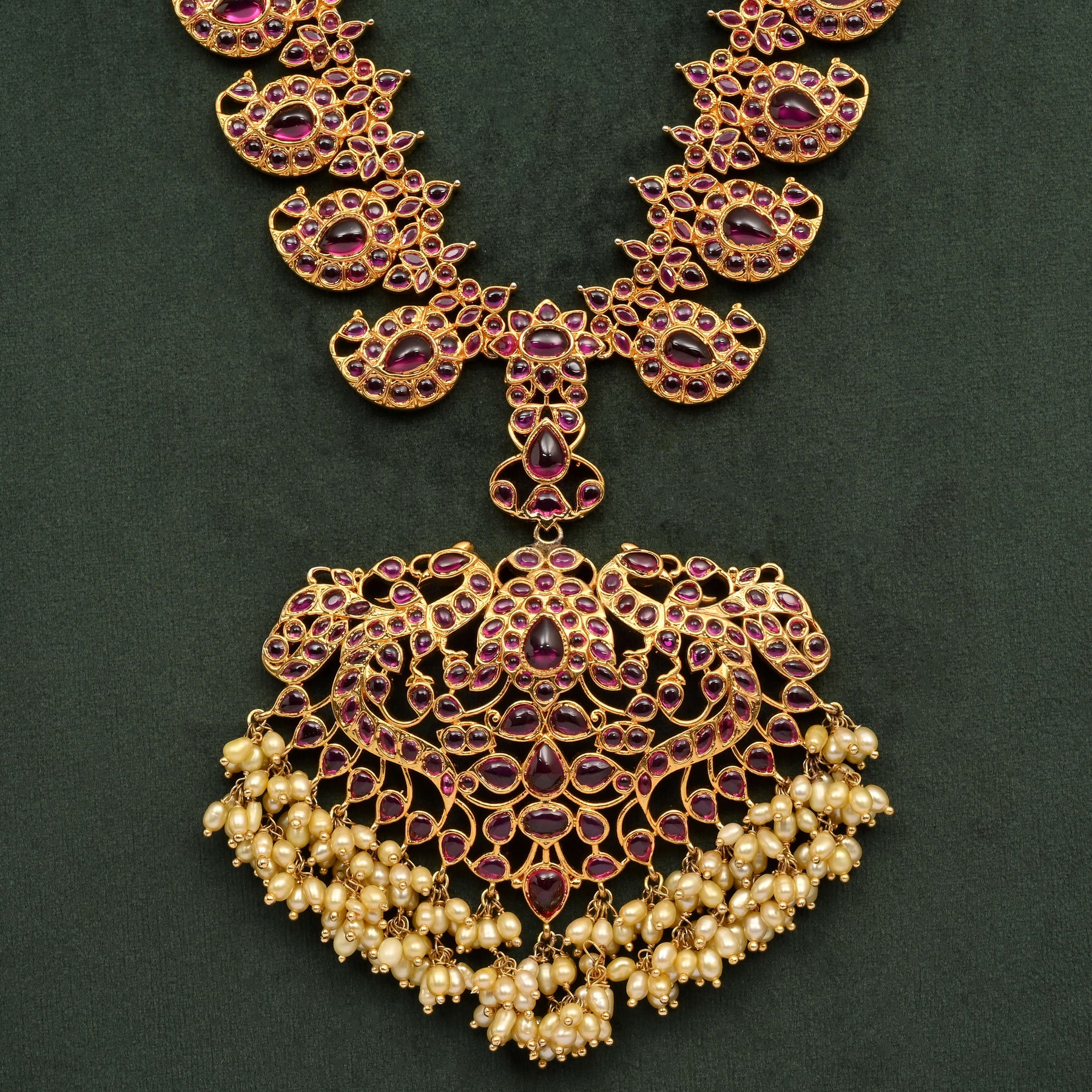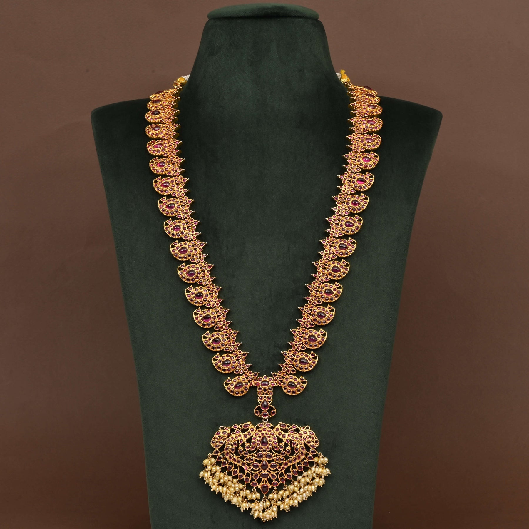 Elevate your traditional ensemble with this exquisite Temple Necklace Set, crafted in lustrous gold finish. Each piece showcases authentic nakshi artistry—intricate hand-carved detailing that reflects centuries of jewelry-making heritage. The ornate temple design features delicate filigree work and dimensional patterns characteristic of classical Indian craftsmanship. As a handcrafted creation, every set is genuinely one-of-a-kind, bearing the subtle variations that distinguish artisanal work. Perfect for festive occasions, weddings, or adding timeless elegance to your collection. An investment in authentic traditional jewelry that celebrates skilled artisanship.