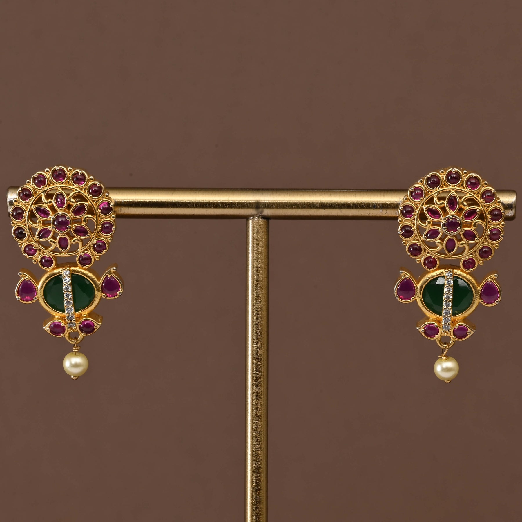 Elevate your traditional ensemble with this exquisite Temple Necklace Set, a masterpiece of handcrafted artistry. Featuring authentic nakshi work in lustrous gold finish, this one-of-a-kind piece showcases the divine presence of Goddess Lakshmi, embodying grace and prosperity. Each intricate detail reflects meticulous craftsmanship, blending classical temple design with contemporary elegance. Perfect for festive occasions, weddings, or spiritual celebrations, this necklace set captures the essence of timeless Indian heritage. A treasured addition to any jewellery collection, it stands as a testament to skilled artisanal creation.