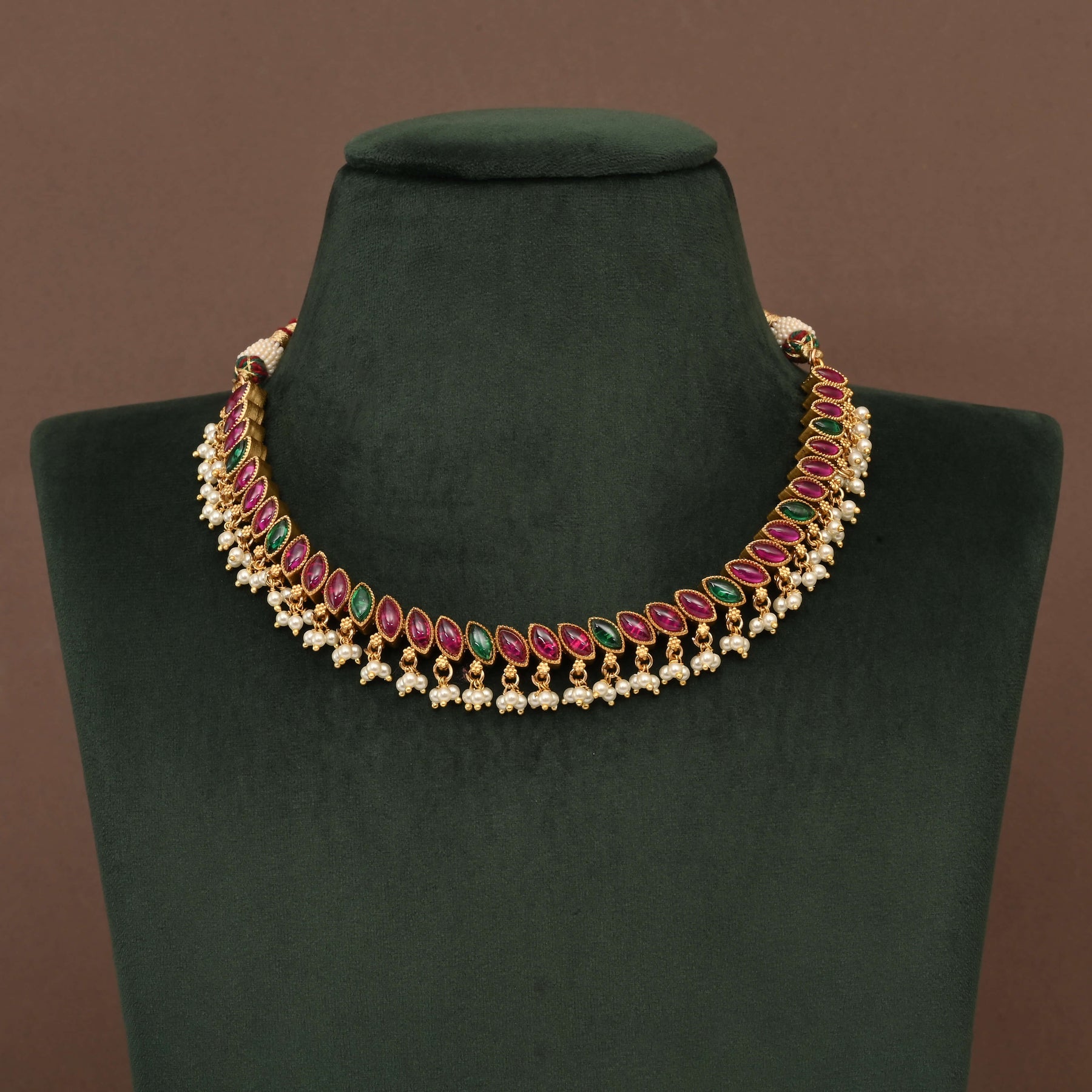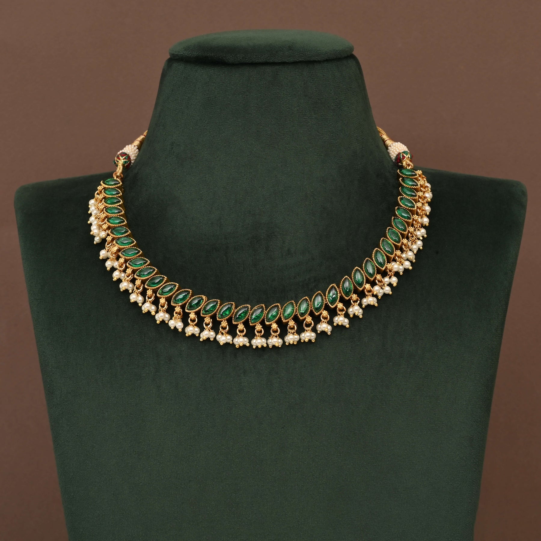 Elevate your traditional ensemble with this exquisite Temple Necklace Set, a masterpiece of handcrafted artistry. Featuring an authentic gold finish that captures the timeless elegance of temple jewelry, this two-in-one design offers versatile styling for both ceremonial occasions and everyday wear. Each piece is meticulously crafted by skilled artisans, ensuring that your necklace is truly one of a kind. The intricate detailing reflects centuries of jewelry-making heritage, making it an investment in both beauty and cultural significance.