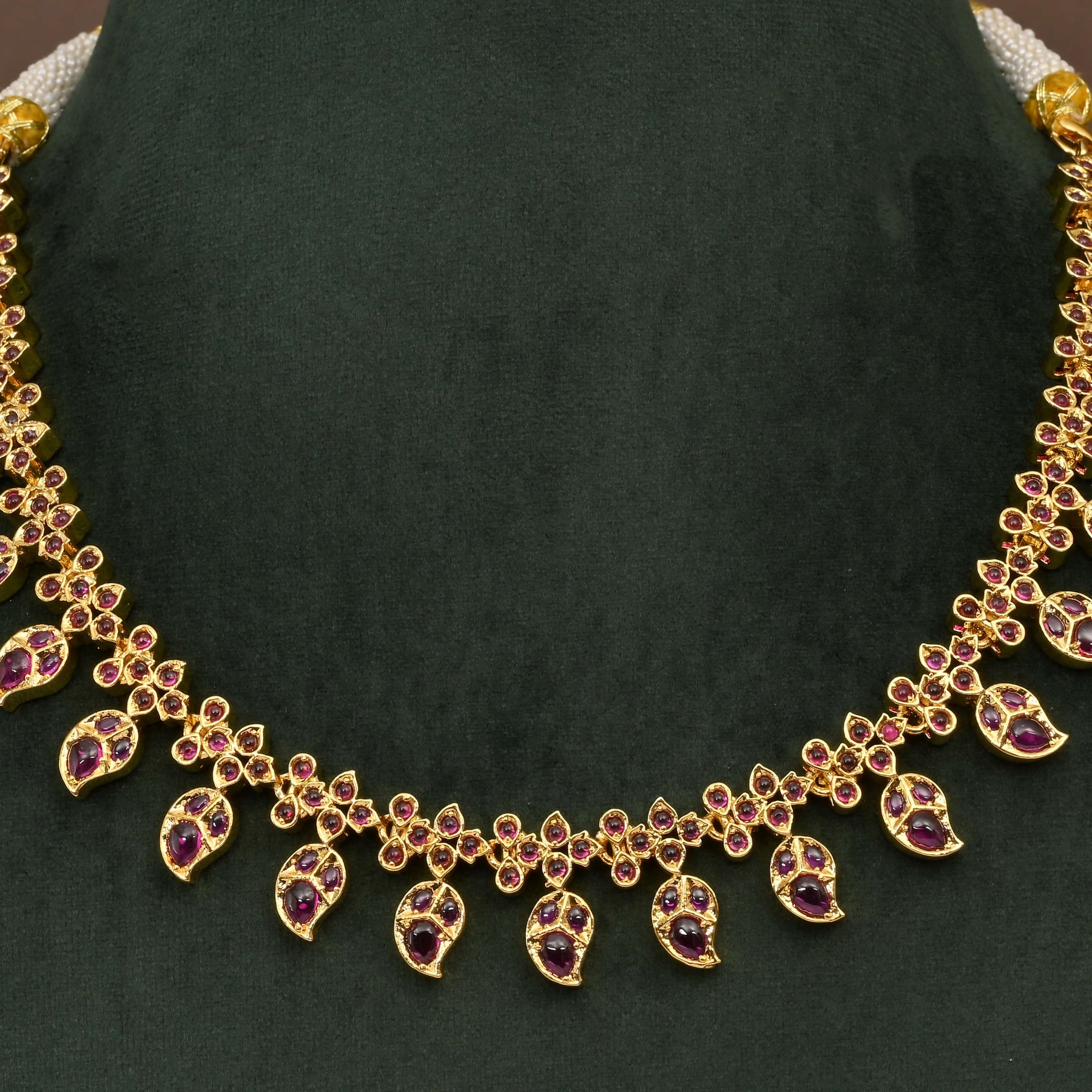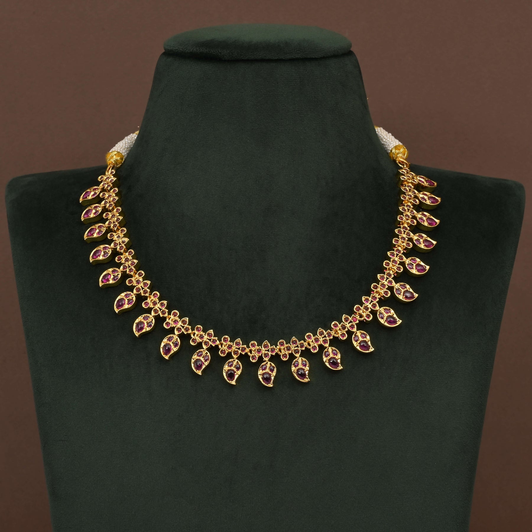 Elevate your traditional ensemble with this exquisite Temple Necklace Set, a masterpiece of authentic craftsmanship. Each piece showcases intricate nakshi detailing, meticulously handcrafted to capture the essence of classical temple jewelry. The warm gold finish complements the ornate design, while the one-of-a-kind nature ensures your accessory remains distinctly yours. Perfect for festive occasions, weddings, or cultural celebrations, this set embodies timeless elegance and artisanal excellence that honors heritage craftsmanship.