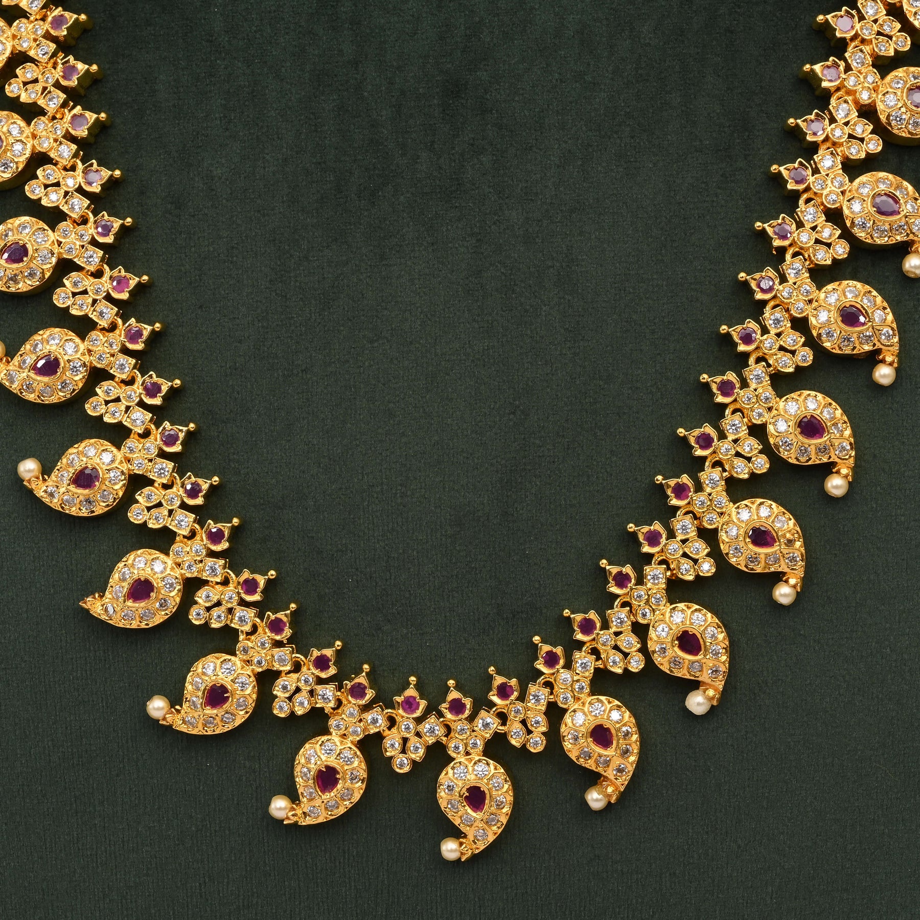 Elevate your traditional wardrobe with this exquisite Temple Necklace Set, crafted in a lustrous gold finish that captures timeless elegance. Each piece showcases authentic nakshi artistry—intricate hand-carved detailing that reflects centuries of jewelry-making heritage. Meticulously handcrafted by skilled artisans, this one-of-a-kind set combines classical temple design with contemporary appeal, making it an ideal choice for festive occasions, weddings, or everyday sophistication. The distinctive craftsmanship ensures no two pieces are identical, offering you a truly unique treasure that celebrates traditional Indian jewelry artistry.