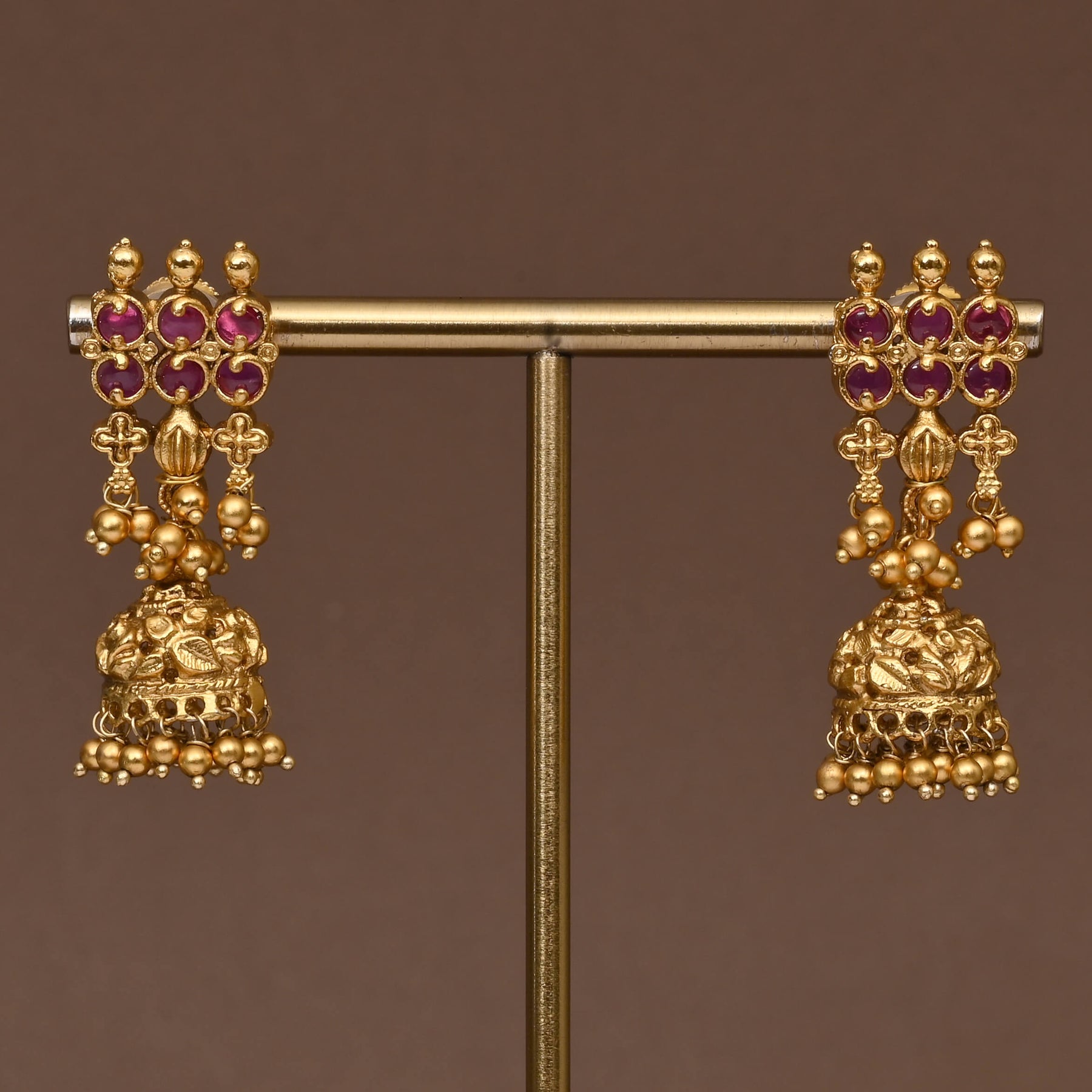 This Temple Necklace Set showcases a traditional Lord Ananta Vishnu design with a rich gold finish that closely resembles real gold. Expertly handcrafted, it offers an exclusive and authentic aesthetic, reflecting timeless cultural artistry. Perfect for those seeking a refined and elegant statement piece rooted in heritage.