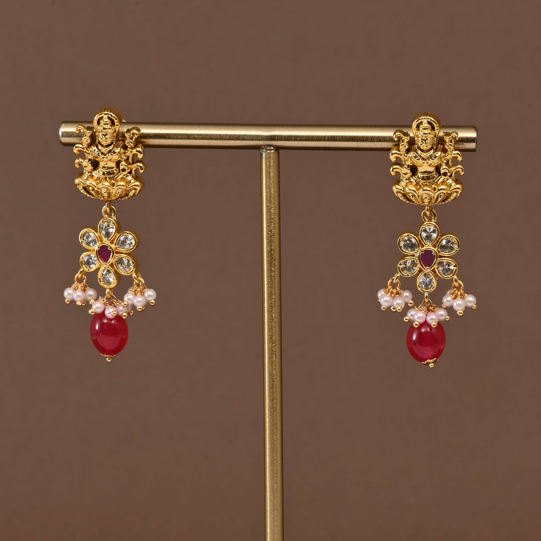 Elevate your traditional wardrobe with this exquisite Temple Necklace Set, crafted in lustrous gold finish. Each piece showcases authentic nakshi artistry—intricate hand-carved detailing that reflects centuries of jewelry-making heritage. The set combines classical temple design elements with meticulous craftsmanship, creating a truly one-of-a-kind accessory. Perfect for festive occasions, weddings, or cultural celebrations, this handcrafted ensemble brings timeless elegance and spiritual significance to your collection. A masterpiece that honors traditional artistry while making a sophisticated statement.