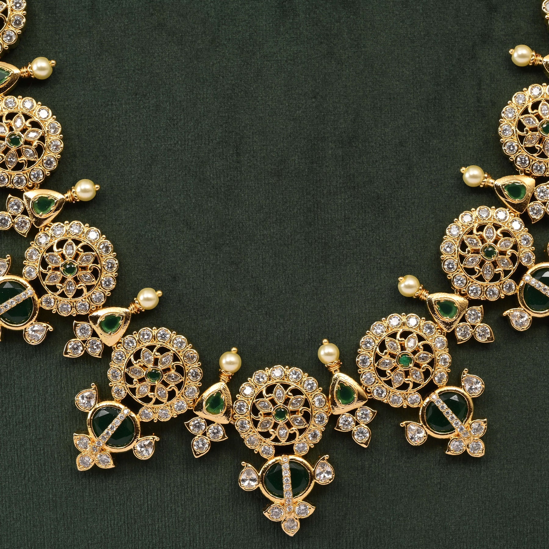 Elevate your traditional ensemble with this exquisite Temple Necklace Set, crafted in lustrous gold finish. Each piece showcases authentic nakshi artistry—intricate hand-carved detailing that reflects centuries of jewelry-making heritage. The meticulous handcrafted construction ensures every necklace is genuinely one of a kind, bearing the unique character of skilled artisanship. Perfect for festivals, celebrations, or adding timeless elegance to your collection, this set captures the essence of classical temple jewelry with contemporary wearability.