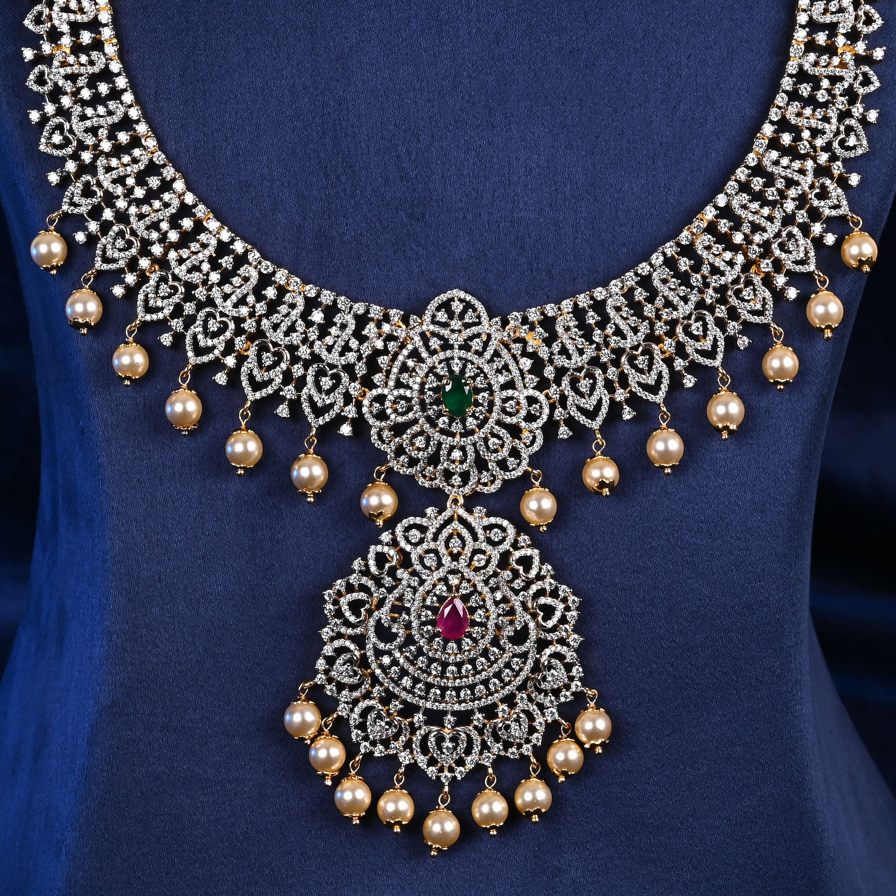 This exquisite 92.5 sterling silver necklace features handcrafted semi-precious emerald stones complemented by real CZ stones. The meticulous craftsmanship creates a diamond-like appearance, making this piece both luxurious and affordable. Each element is carefully integrated into the sophisticated design, perfect for both special occasions and elegant everyday wear.