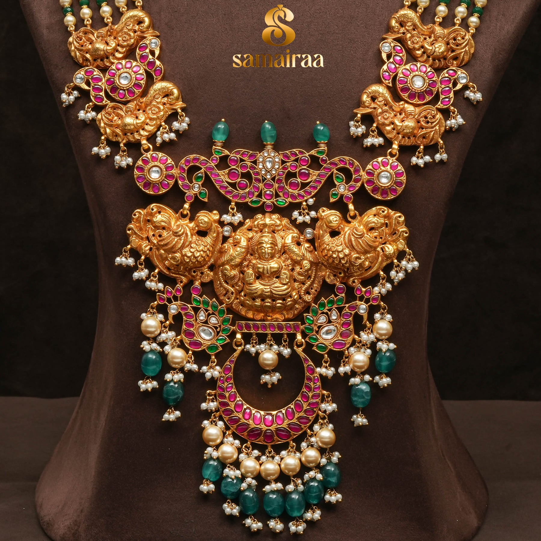 Crafted from 92.5% pure silver, this Temple Kundan Necklace showcases exquisite Indian heritage through its traditional, handcrafted design. Featuring kundan stones that mimic the elegance of gold, each piece is uniquely created to reflect timeless artistry. Perfect for those seeking a one-of-a-kind accessory that honors classic craftsmanship with a luxurious appearance.
