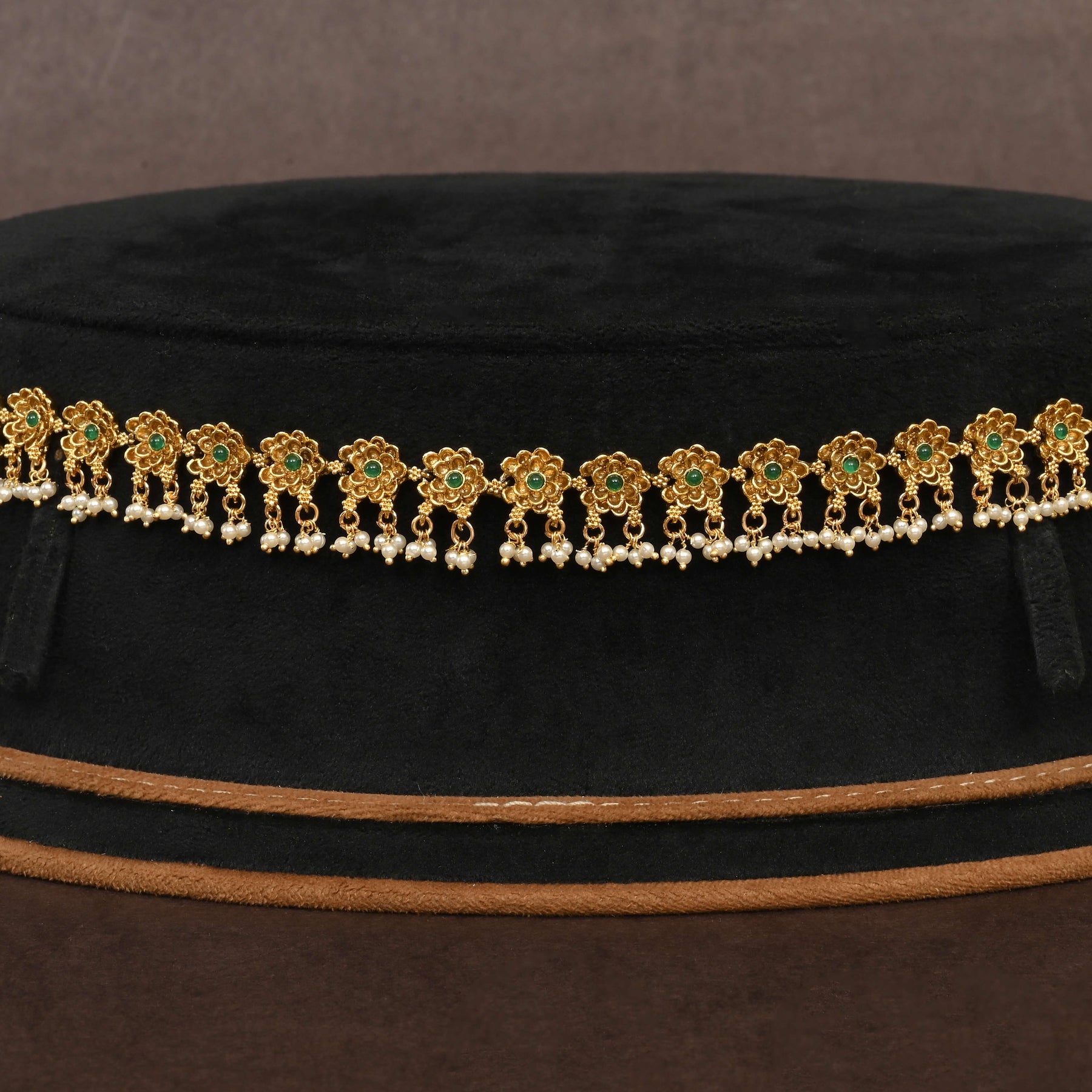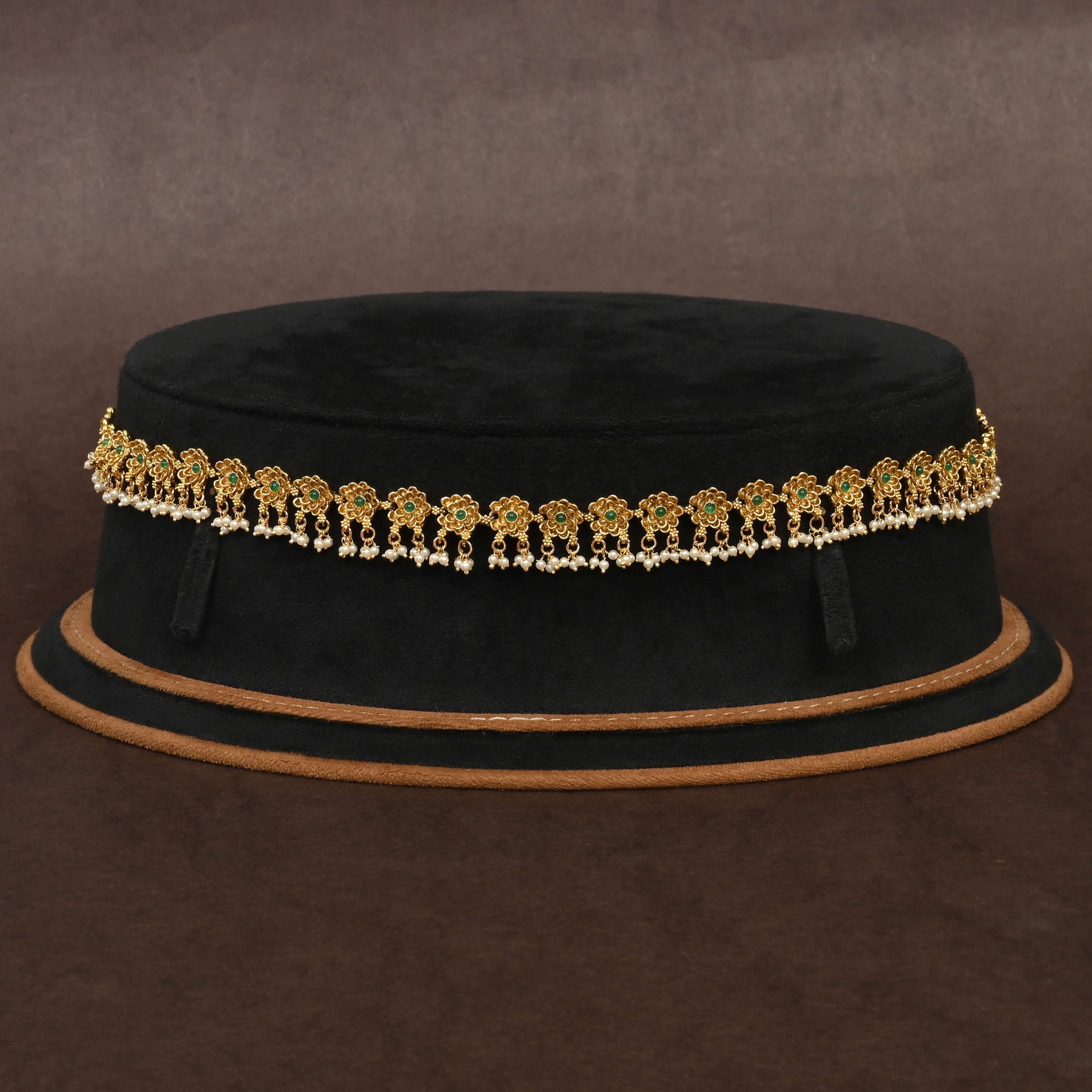 Elevate your traditional ensemble with this exquisite Temple Chain Vaddanam, meticulously handcrafted to showcase authentic gold aesthetics. Each piece is a singular creation, featuring intricate detailing inspired by classical temple jewelry designs. The sophisticated craftsmanship ensures a lustrous finish that captures the warmth and elegance of fine gold, making it an ideal accessory for festive occasions and cultural celebrations. A timeless investment in artisanal jewelry that honors heritage while delivering contemporary appeal.