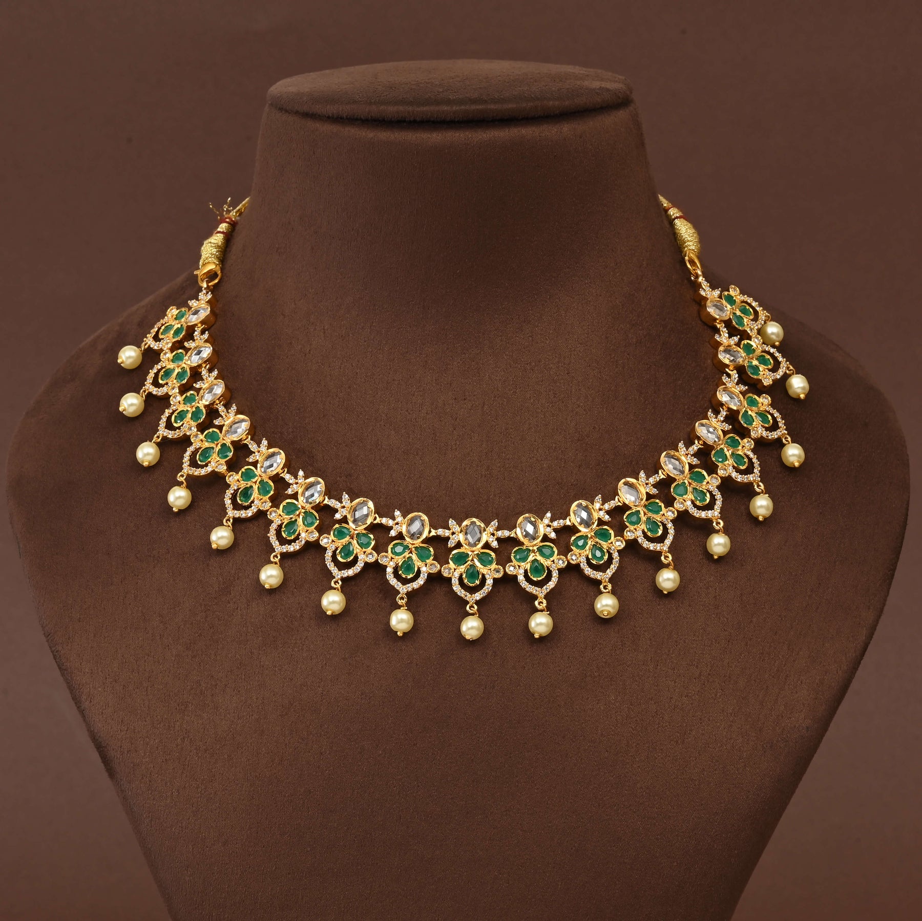 Elevate your collection with this exquisite handcrafted uncut polki necklace set, where raw elegance meets timeless artistry. Each piece features authentic semi-precious polki stones in their natural, uncut form, paired with a lustrous gold-look finish that enhances their organic beauty. Meticulously crafted by skilled artisans, this one-of-a-kind set showcases the distinctive character of genuine polki—no two pieces are identical. Perfect for those who appreciate the refined sophistication of traditional Indian jewelry with a contemporary edge. A statement piece that celebrates individuality and craftsmanship.