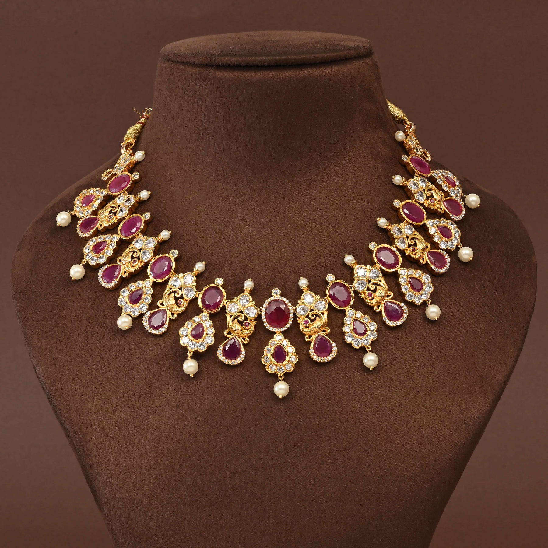Elevate your collection with this exquisite handcrafted uncut polki necklace set, where raw elegance meets timeless sophistication. Each piece showcases authentic semi-precious polki stones in their natural, uncut form, paired with a lustrous gold-look finish that captures light beautifully. Meticulously crafted by skilled artisans, this one-of-a-kind set celebrates the inherent beauty of unpolished gemstones, offering a distinctive aesthetic that sets it apart from conventional jewelry. Perfect for those who appreciate the artistry of traditional craftsmanship and the unique character of natural stones.