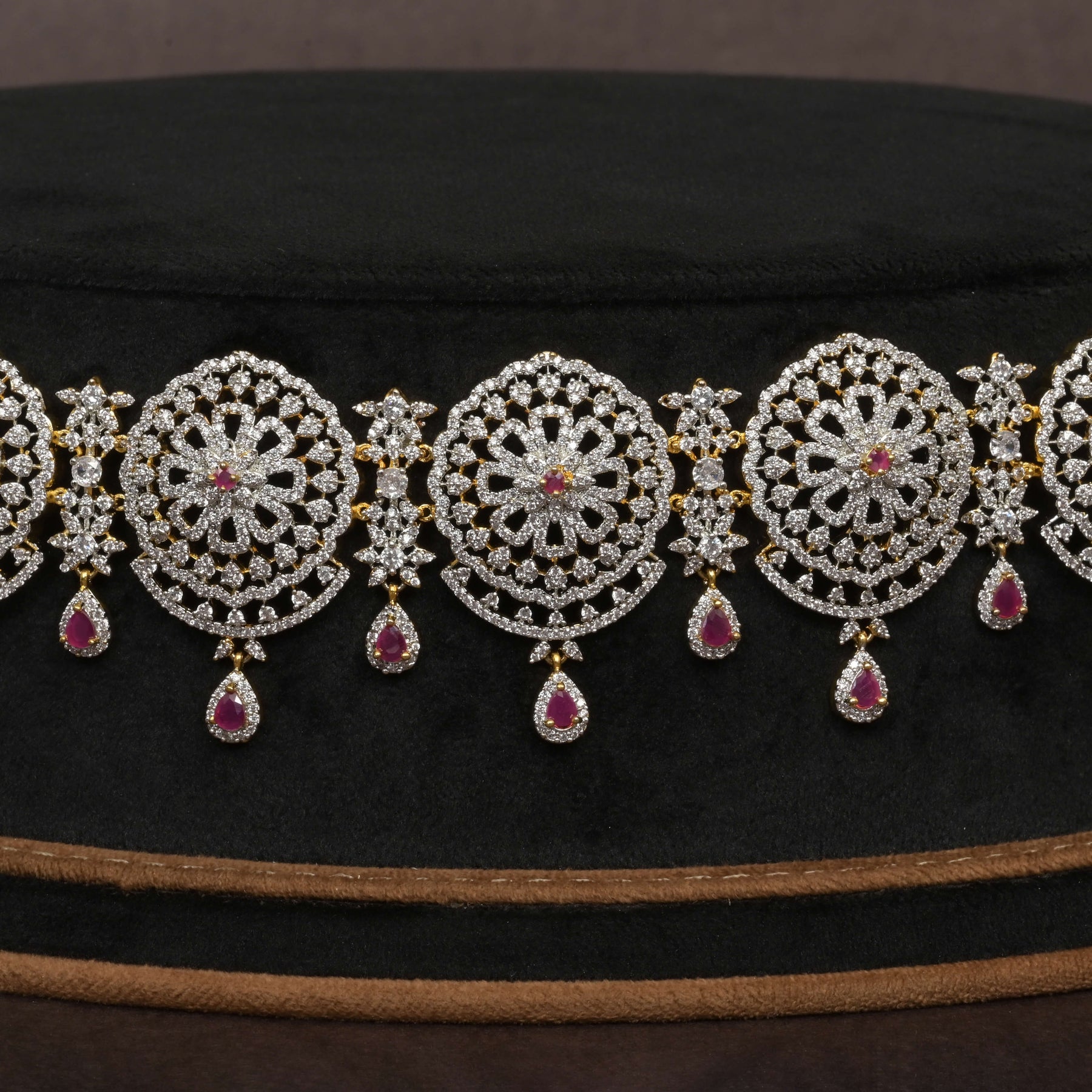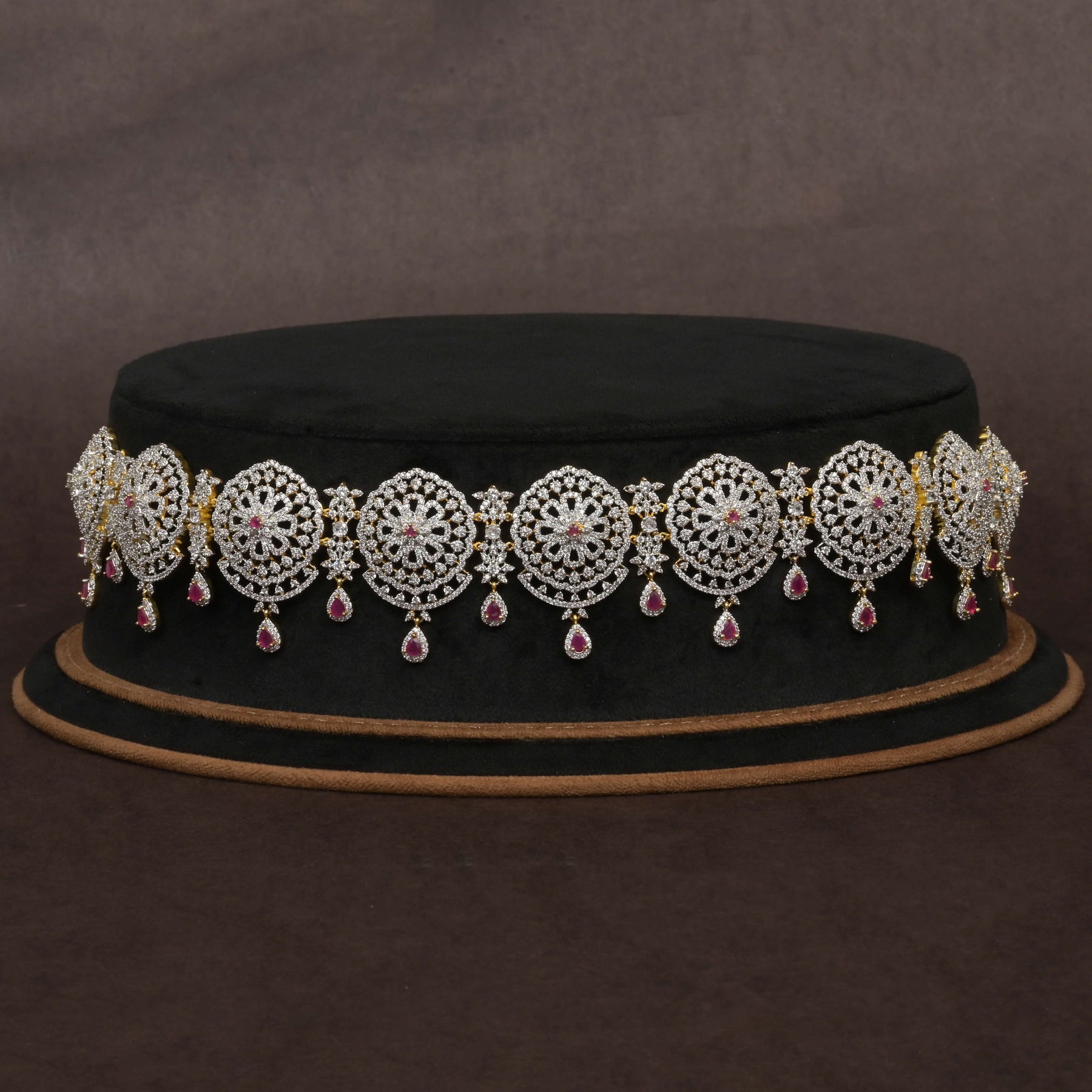 Elevate your traditional attire with this expertly handcrafted Chain Vaddanam, designed to mimic the brilliance and elegance of real diamonds. Featuring a unique, one-of-a-kind design in a stunning diamond finish, it offers timeless sophistication while ensuring exceptional craftsmanship. Perfect for special occasions, this piece blends classic appeal with contemporary artistry, making it an essential addition to your jewelry collection.
