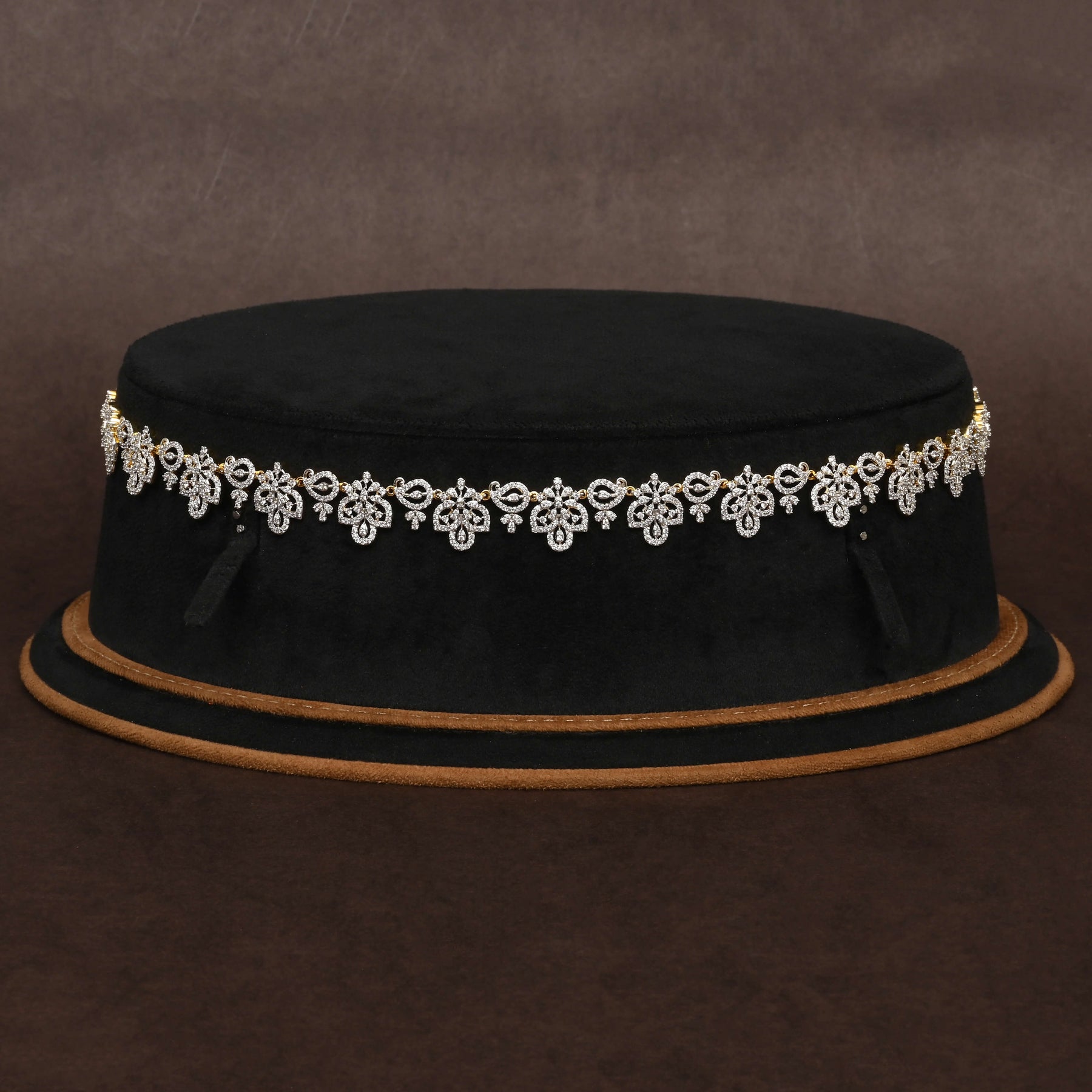 This Chain Vaddanam features a stunning diamond finish that mimics the brilliance of real diamonds. Expertly handcrafted, each piece showcases a unique, one-of-a-kind design, combining traditional artistry with contemporary elegance. Perfect for those seeking luxury and individuality in their jewelry collection.