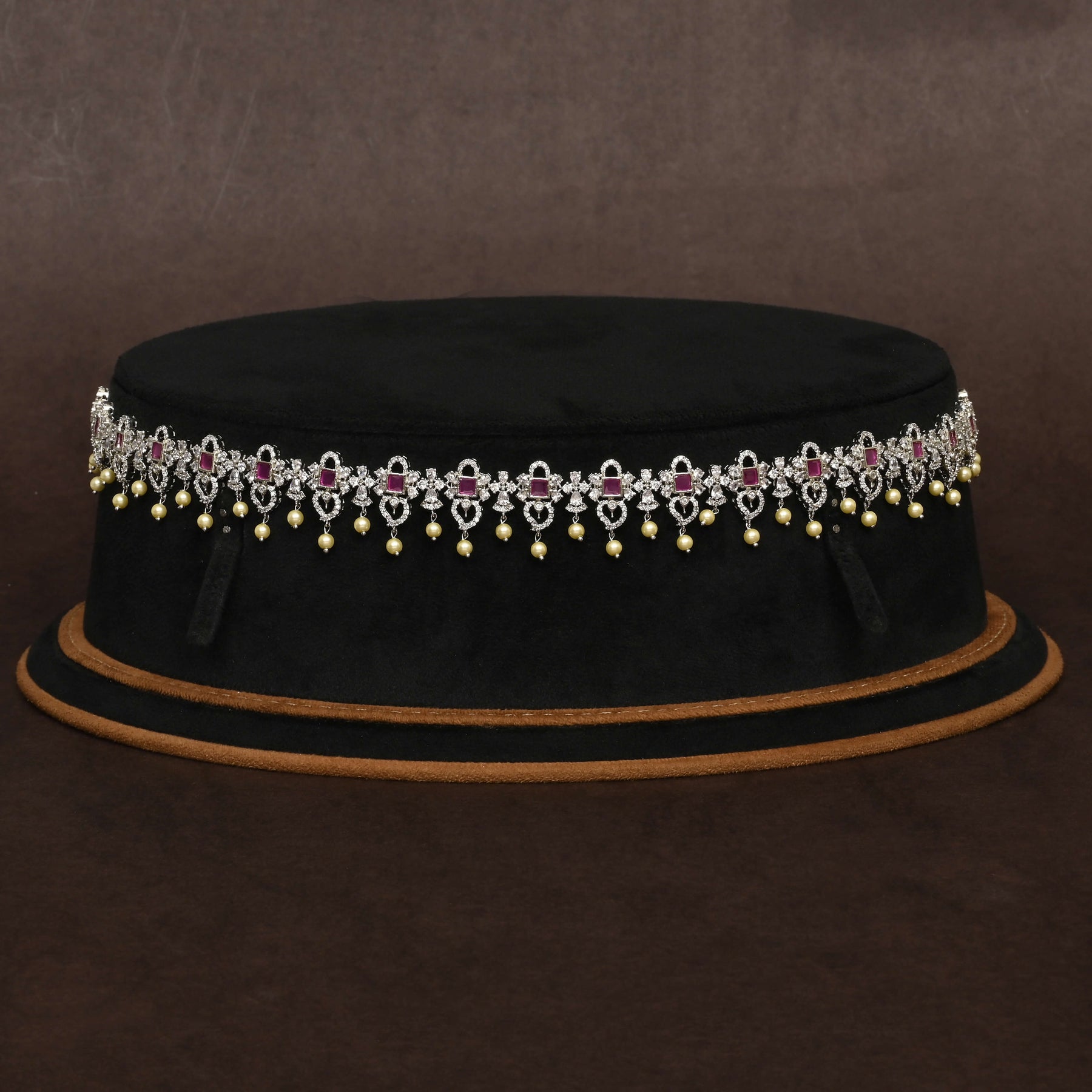 Elevate your traditional ensemble with this exquisite Diamond Finish Chain Vaddanam, meticulously handcrafted to showcase authentic CZ stones that deliver a stunning diamond-like brilliance. Each piece is a one-of-a-kind creation, featuring intricate detailing that captures light beautifully. The premium diamond finish enhances the lustrous appeal, making it an ideal accessory for weddings, festivals, and special occasions. A timeless investment in elegance that combines traditional craftsmanship with contemporary sparkle.
