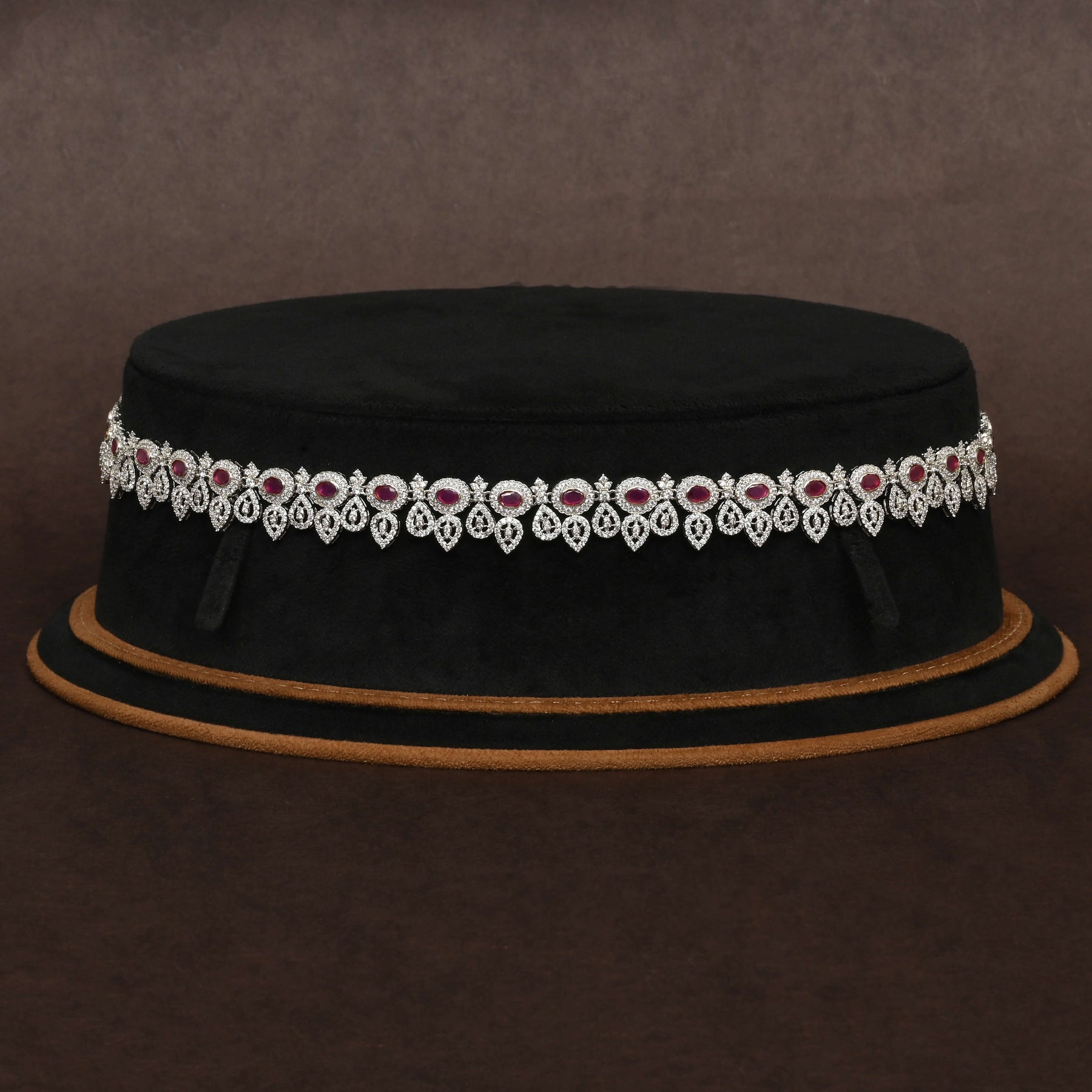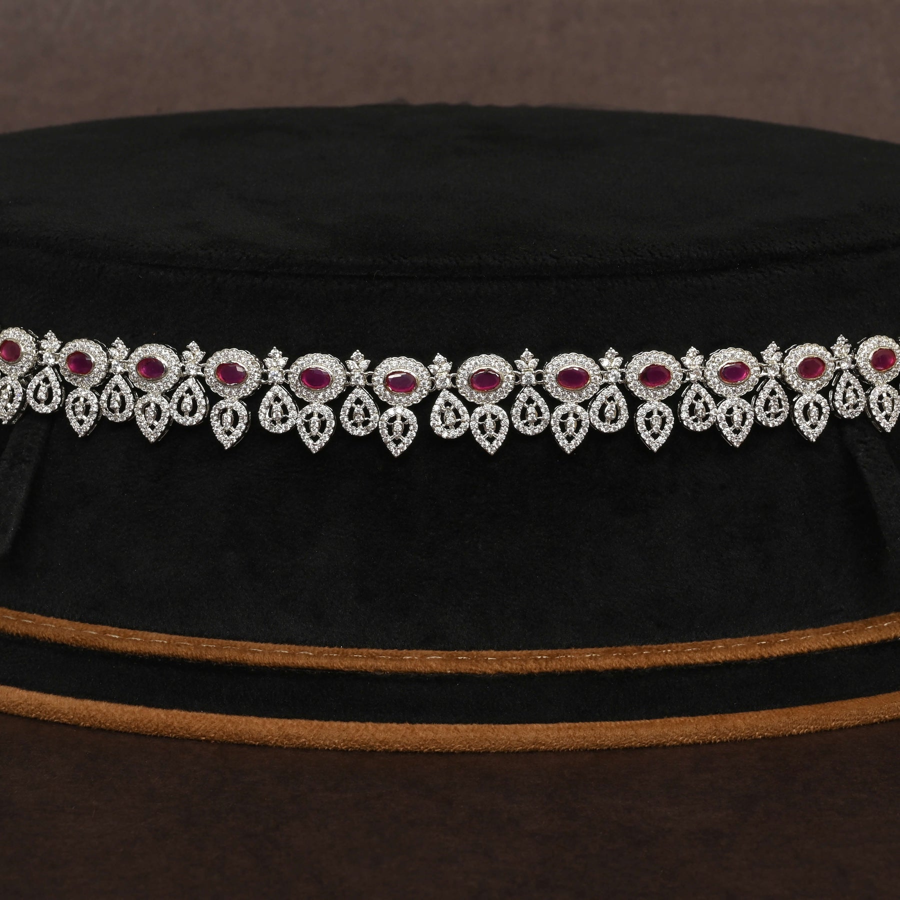 Elevate your traditional ensemble with this exquisite Diamond Finish Chain Vaddanam, meticulously handcrafted to deliver authentic sparkle and sophistication. Featuring genuine CZ stones that replicate the brilliance of diamonds, this one-of-a-kind piece combines timeless craftsmanship with contemporary elegance. The intricate design showcases superior quality and attention to detail, making it an ideal choice for special occasions or everyday luxury. Perfect for those who appreciate fine jewelry with distinctive character and lasting radiance.