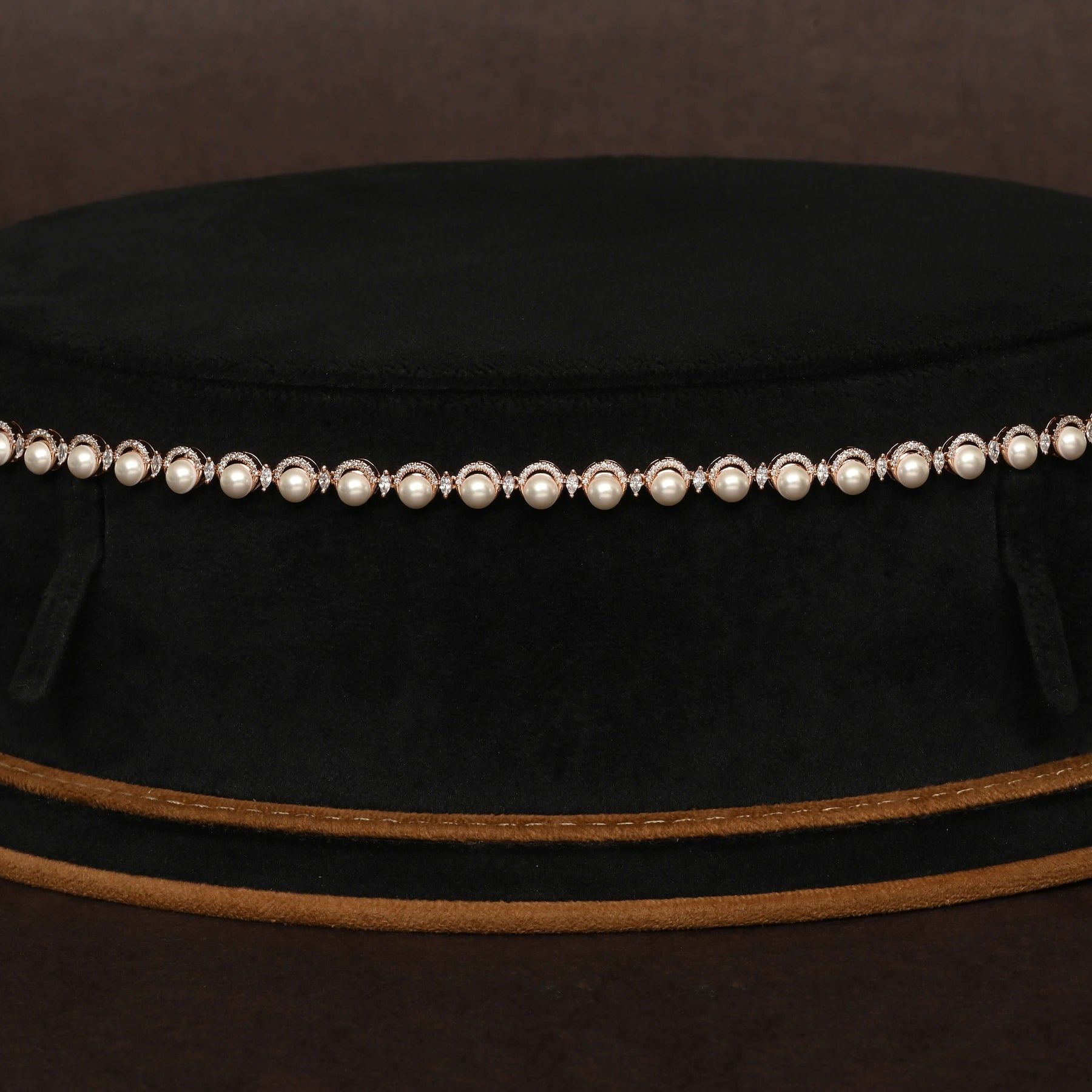 Elevate your traditional ensemble with this exquisite Rose Gold Finish Vaddanam, a masterpiece of contemporary craftsmanship. Adorned with authentic cubic zirconia stones that capture the brilliance of diamonds, this waist ornament combines timeless elegance with modern design sensibilities. Delicate pearls are thoughtfully embedded throughout, adding layers of sophistication and luminosity. Each piece is meticulously handcrafted to ensure a one-of-a-kind design that reflects individual artistry. The lustrous rose gold finish provides a warm, flattering complement to all skin tones, making this vaddanam an essential accessory for festive occasions and celebrations.