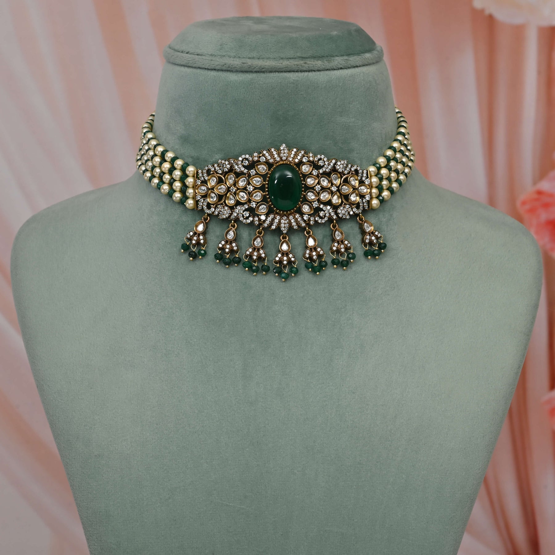 Meticulously hand-crafted Victorian choker featuring authentic CZ stones and premium moissanite accents. This beaded necklace combines traditional craftsmanship with luxurious elements, creating an elegant statement piece that embodies classical sophistication with contemporary refinement. Perfect for elevating both formal attire and everyday ensembles.
