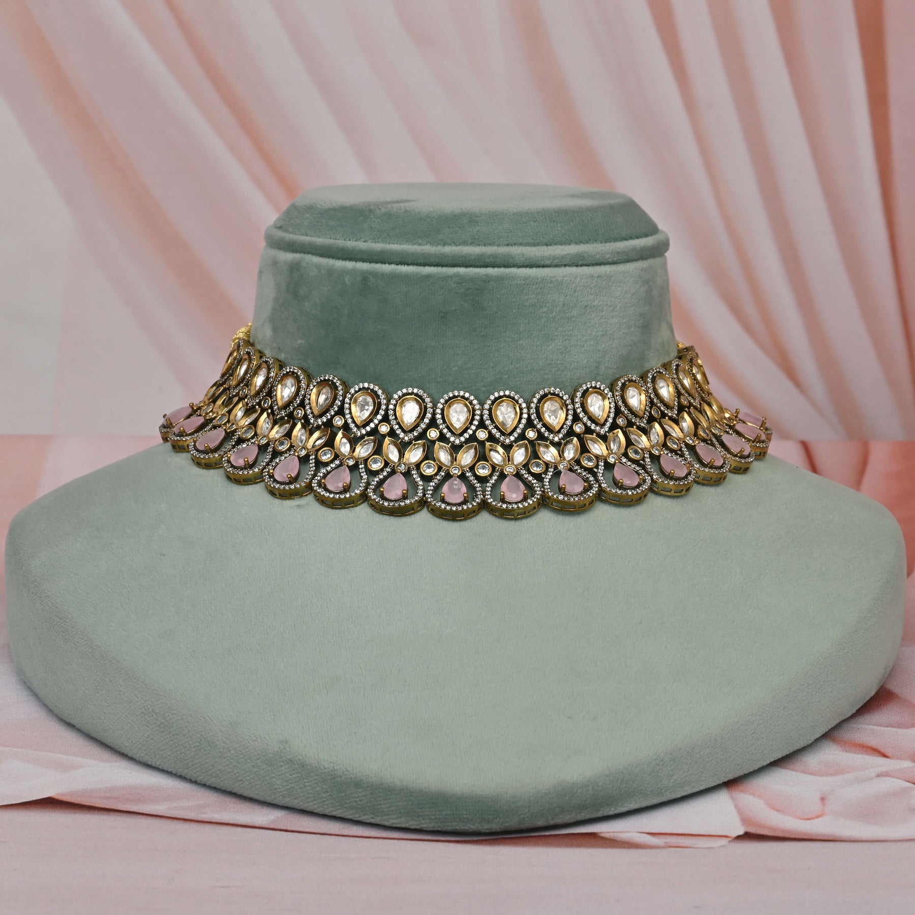Meticulously hand-crafted Victorian beads choker featuring an exquisite combination of genuine CZ stones, brilliant moissanite, and semi-precious pink stones. This luxury piece balances historical elegance with contemporary craftsmanship, creating a sophisticated statement accessory that elevates both traditional and modern ensembles.