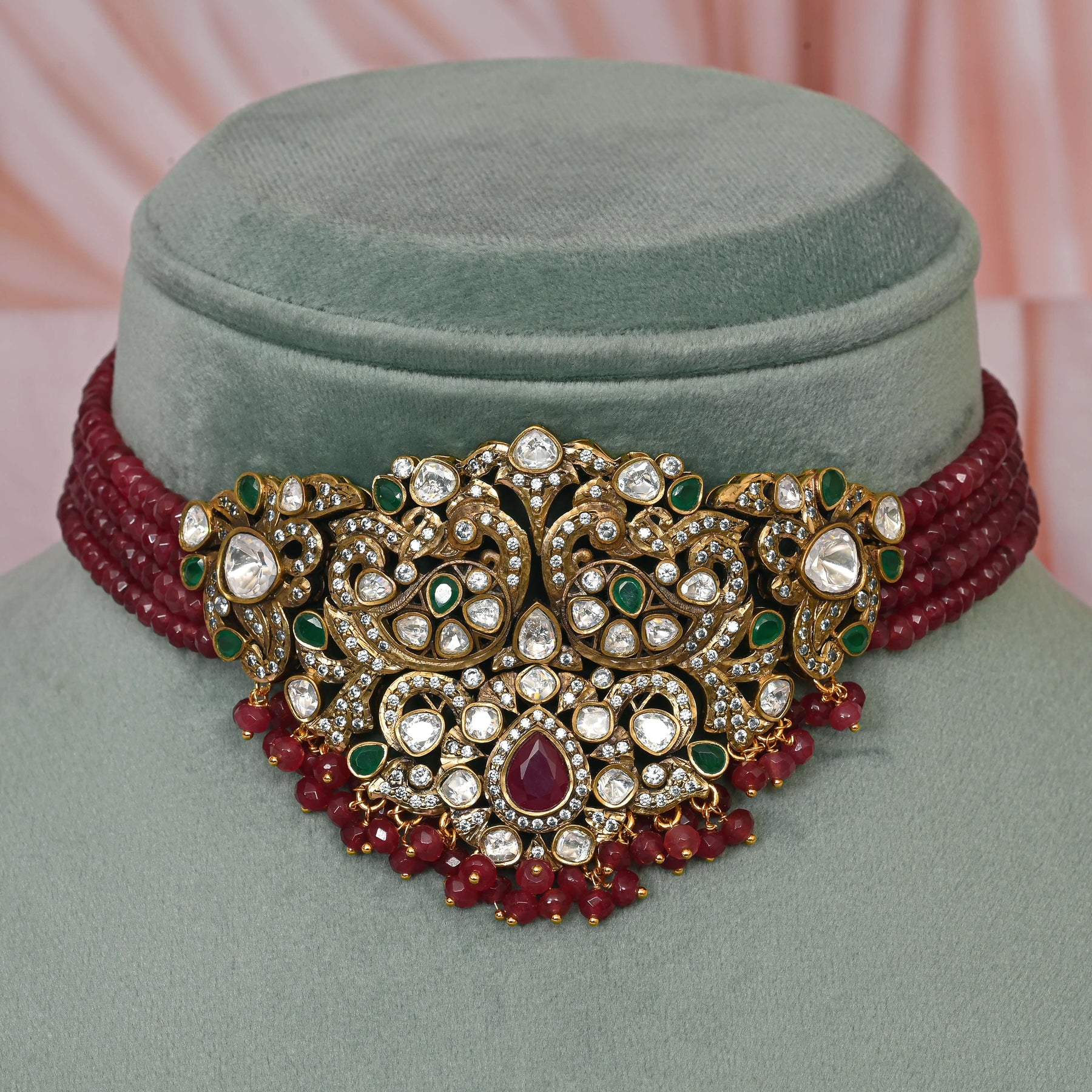 Meticulously hand-crafted Victorian beads choker featuring an exquisite combination of genuine CZ stones and premium moissanite. This luxurious piece showcases exceptional artisanship with its authentic Victorian-inspired design, offering sophisticated elegance for discerning collectors. The precise stone arrangement creates optimal light refraction, ensuring a brilliant sparkle that elevates any ensemble.