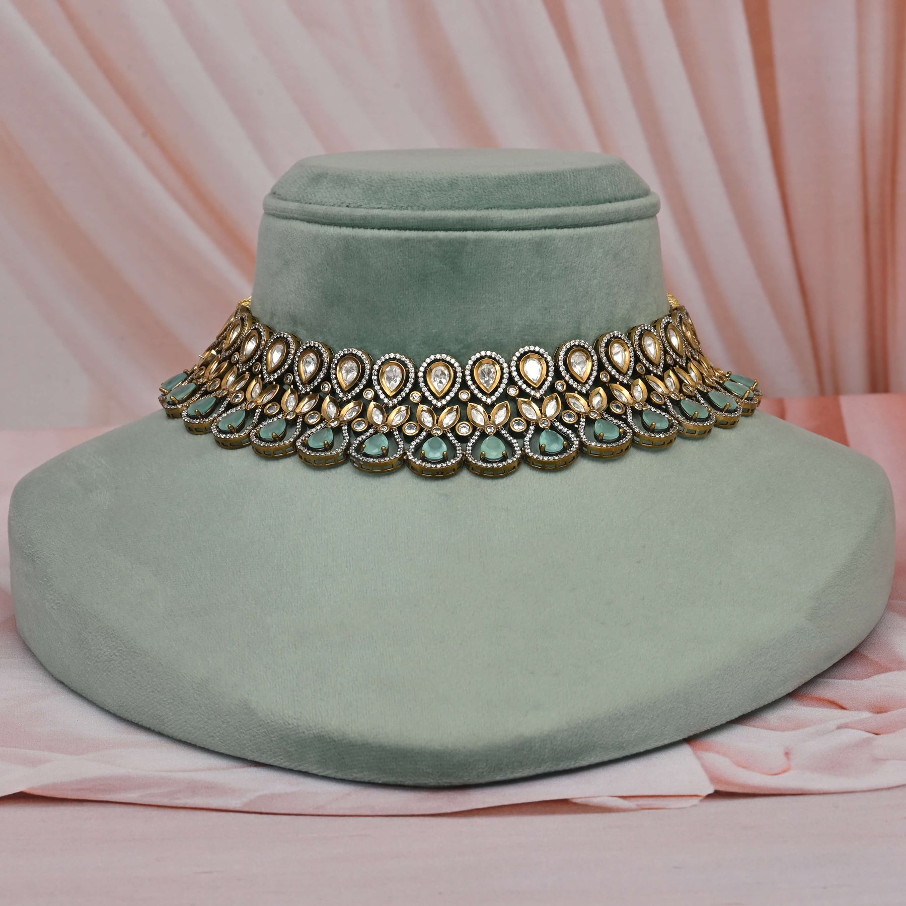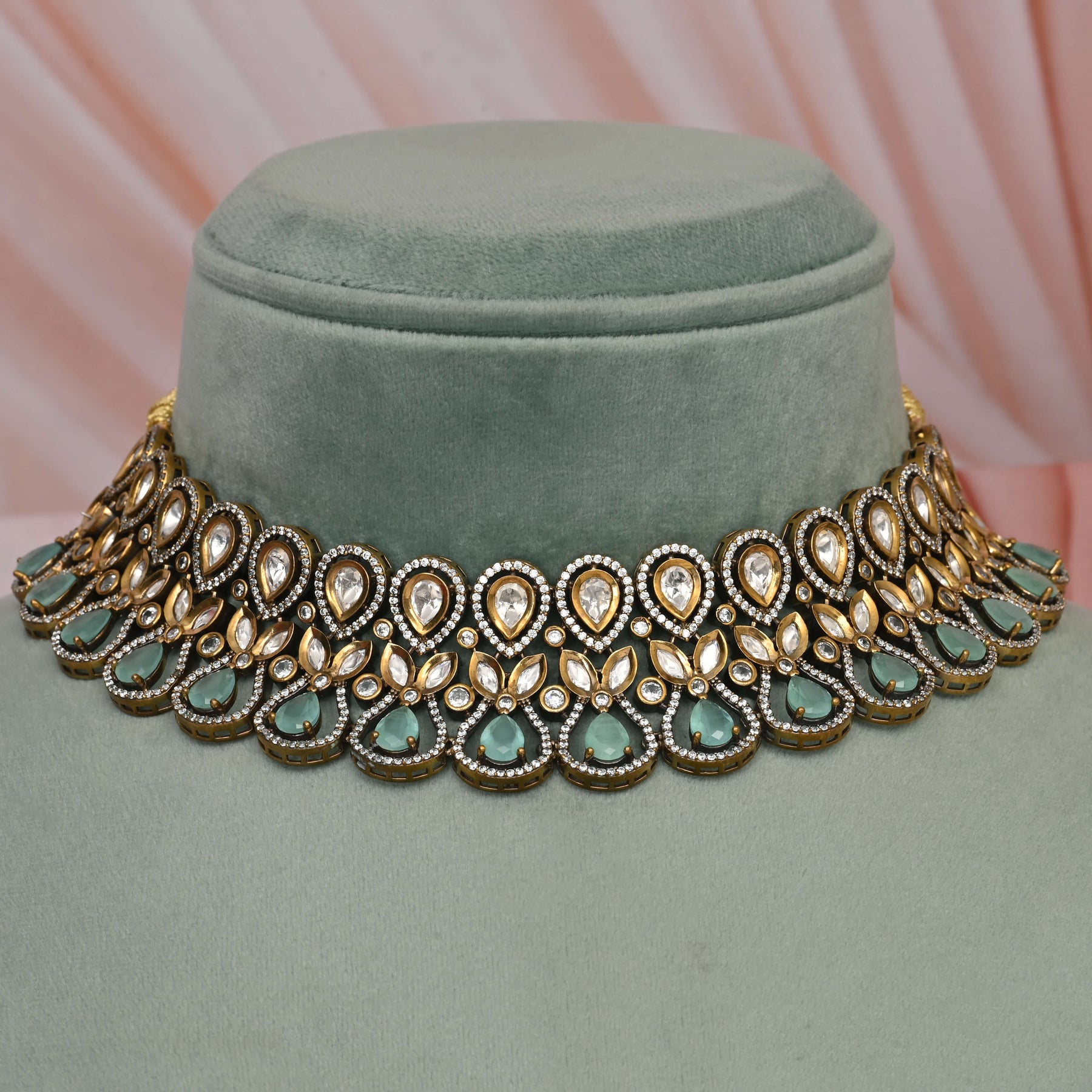This Victorian Choker showcases a refined blend of real CZ stones and moissanite, meticulously hand-crafted to embody luxury and timeless elegance. Its intricate beadwork and sparkling stones create a sophisticated accessory perfect for elevating any formal ensemble with a classic, expert touch.