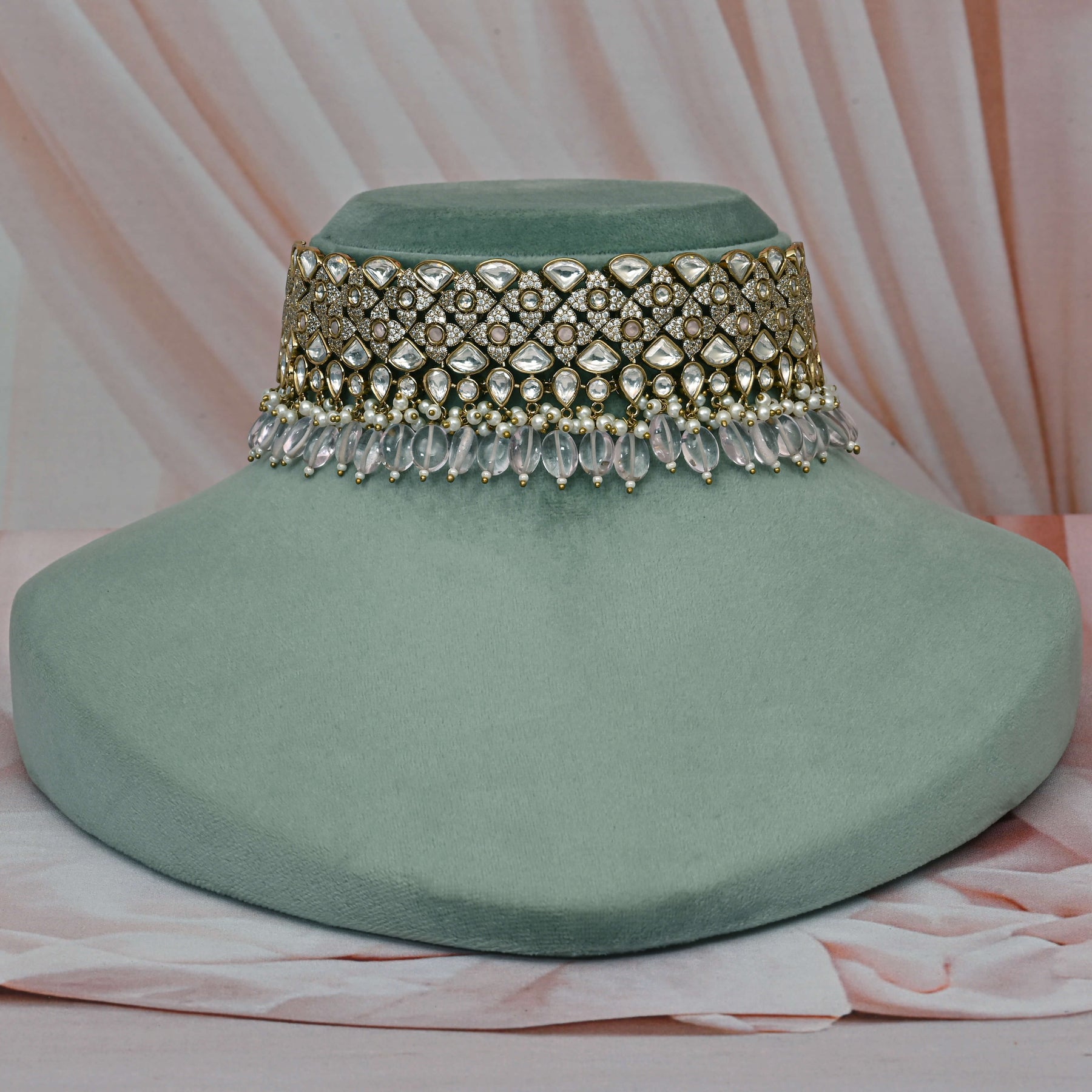 This Victorian choker showcases expert craftsmanship with a unique, one-of-a-kind design. Handcrafted to perfection, it features dazzling real CZ and moissanite stones that mimic the brilliance of genuine diamonds. Elegant pearls dangle gracefully, adding a timeless charm to this exquisite piece. Ideal for those seeking a sophisticated accessory that combines vintage allure with modern sparkle.