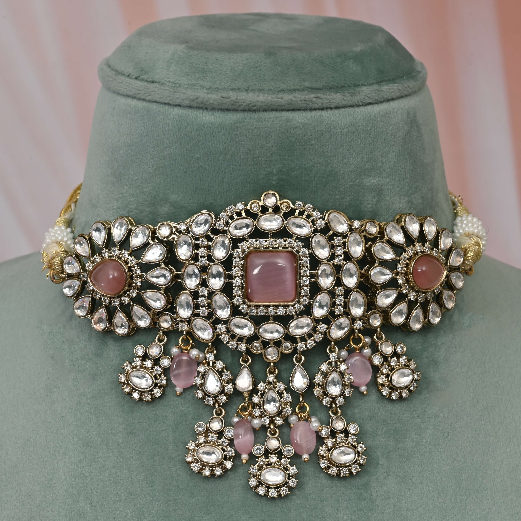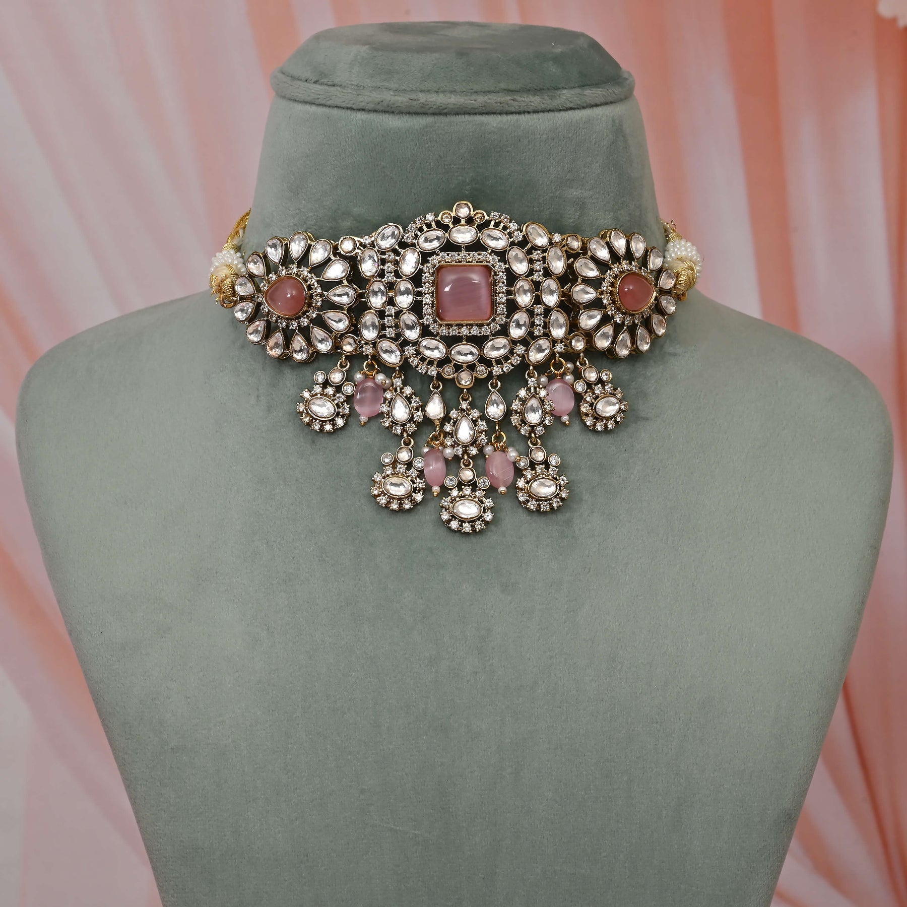 Meticulously hand-crafted Victorian beads choker featuring an exquisite combination of genuine CZ stones and premium moissanite. This luxurious piece showcases exceptional artisanship with its authentic Victorian-inspired design, offering sophisticated elegance for discerning collectors. The precise stone arrangement creates optimal light reflection, elevating any formal ensemble.