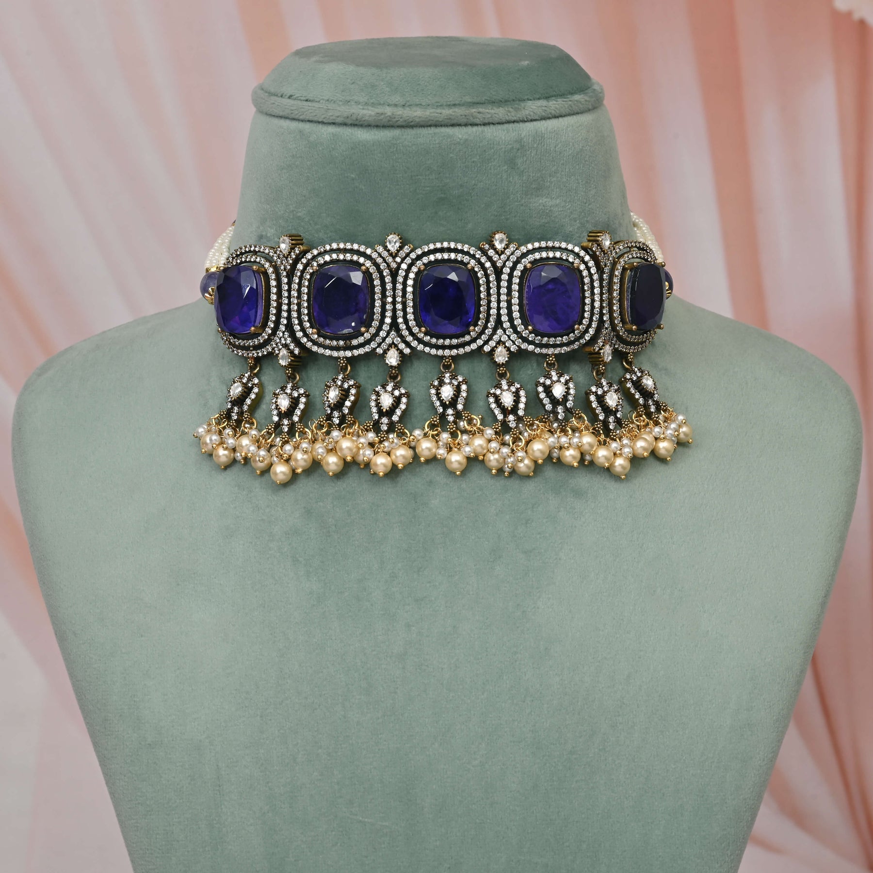 This meticulously hand-crafted Victorian Choker features authentic CZ stones precisely set among elegant beads, creating a luxurious statement piece. The classic Victorian design elements blend seamlessly with contemporary craftsmanship, offering sophisticated elegance that elevates both traditional and modern attire. Each stone is carefully positioned to maximize brilliance and reflect light beautifully.
