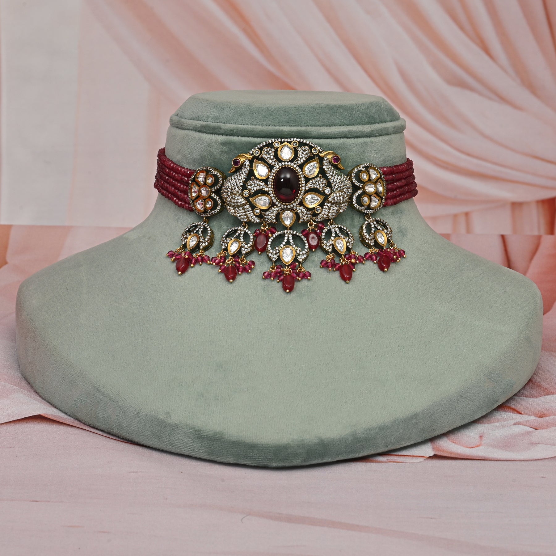 Meticulously hand-crafted Victorian beads choker featuring an exquisite combination of genuine CZ stones and premium moissanite. This luxurious piece showcases exceptional artisanship with its classic Victorian-inspired design, offering sophisticated elegance for special occasions. The precision-set stones capture and reflect light brilliantly, elevating any ensemble with timeless refinement.