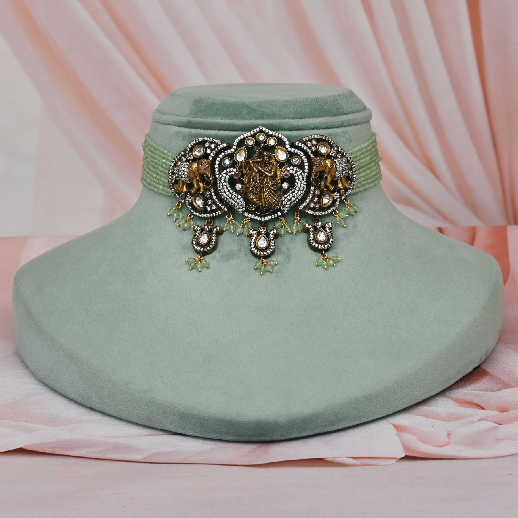 Meticulously hand-crafted Victorian choker featuring authentic CZ stones arranged in a traditional beaded pattern. This luxury accessory combines historical elegance with contemporary craftsmanship, offering a sophisticated statement piece that elevates both formal attire and everyday ensembles with its timeless design and brilliant clarity.