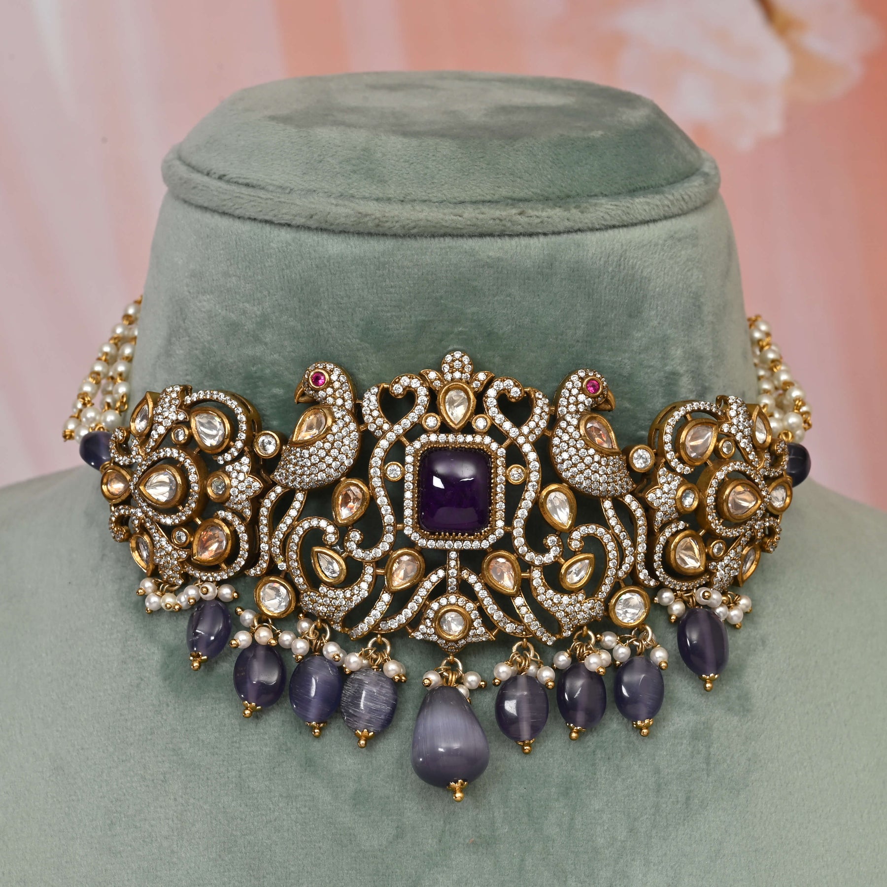 Meticulously hand-crafted Victorian beads choker featuring an exquisite combination of genuine CZ stones and premium moissanite. This luxurious piece showcases exceptional artisanship with its authentic Victorian-inspired design, offering sophisticated elegance for discerning collectors. The precise stone arrangement creates optimal light reflection, elevating any formal ensemble.