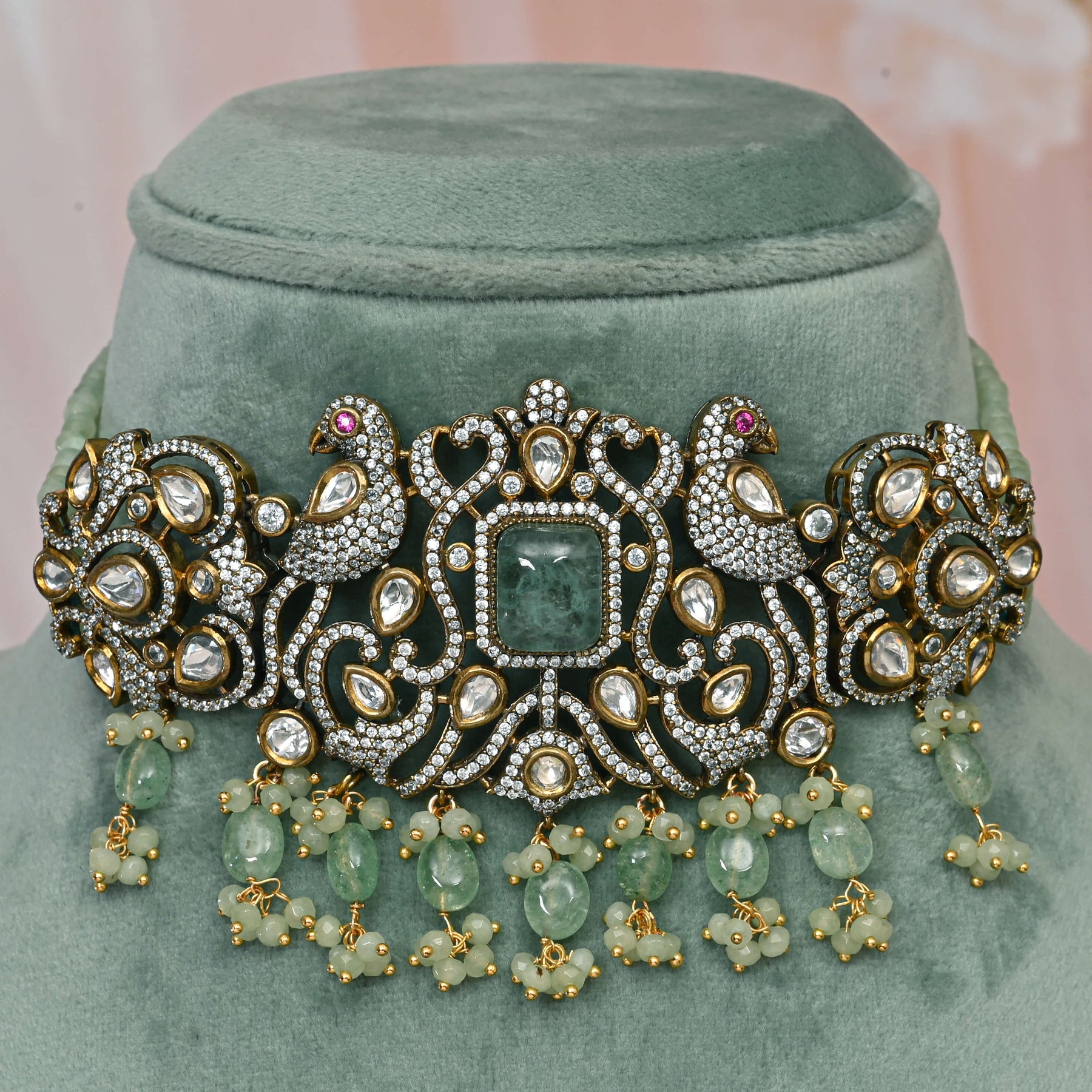Meticulously hand-crafted Victorian beads choker featuring an exquisite combination of genuine CZ stones and premium moissanite. This luxurious piece showcases exceptional artisanship with its authentic Victorian-inspired design, offering sophisticated elegance for discerning collectors. The precise stone arrangement creates optimal light refraction, ensuring a brilliant sparkle that elevates any ensemble.