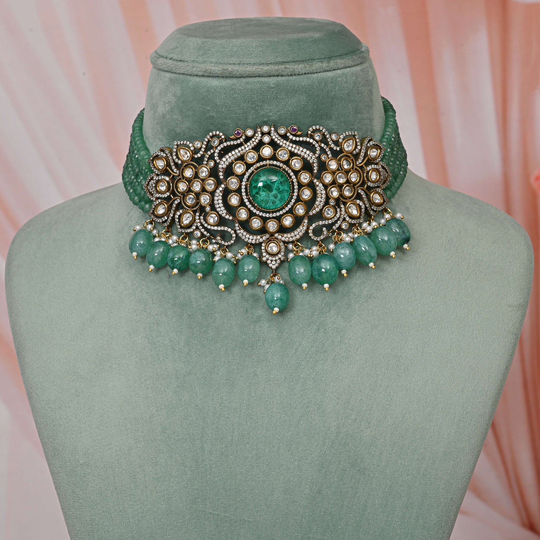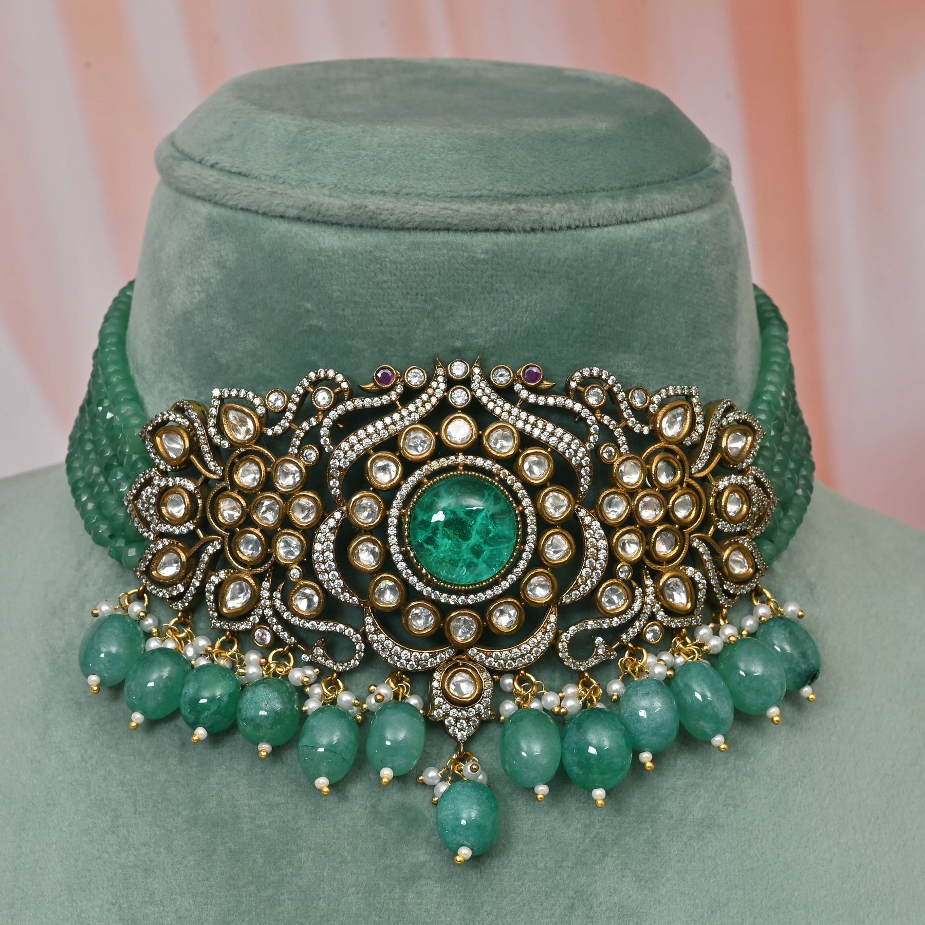 Meticulously hand-crafted Victorian beads choker featuring an exquisite combination of genuine CZ stones and premium moissanite. This luxurious neckpiece showcases superior craftsmanship with authentic Victorian-inspired detailing, offering exceptional brilliance and fire. A sophisticated statement piece that elevates both traditional and contemporary ensembles.