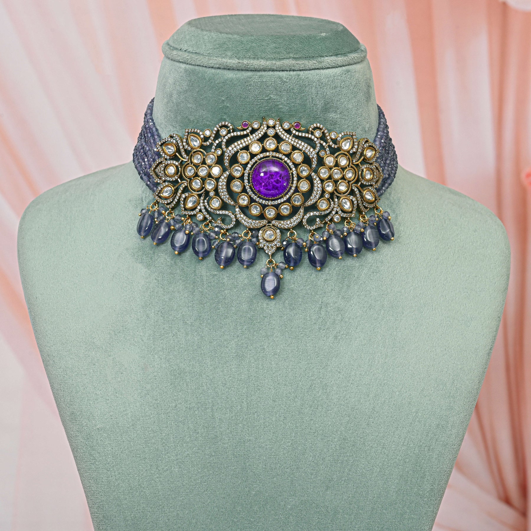 Meticulously hand-crafted Victorian beads choker featuring an exquisite combination of genuine CZ stones and premium moissanite. This luxurious piece showcases exceptional artisanship with its authentic Victorian-inspired design, offering sophisticated elegance for special occasions. The precision-set stones capture and reflect light brilliantly, elevating any ensemble with timeless refinement.