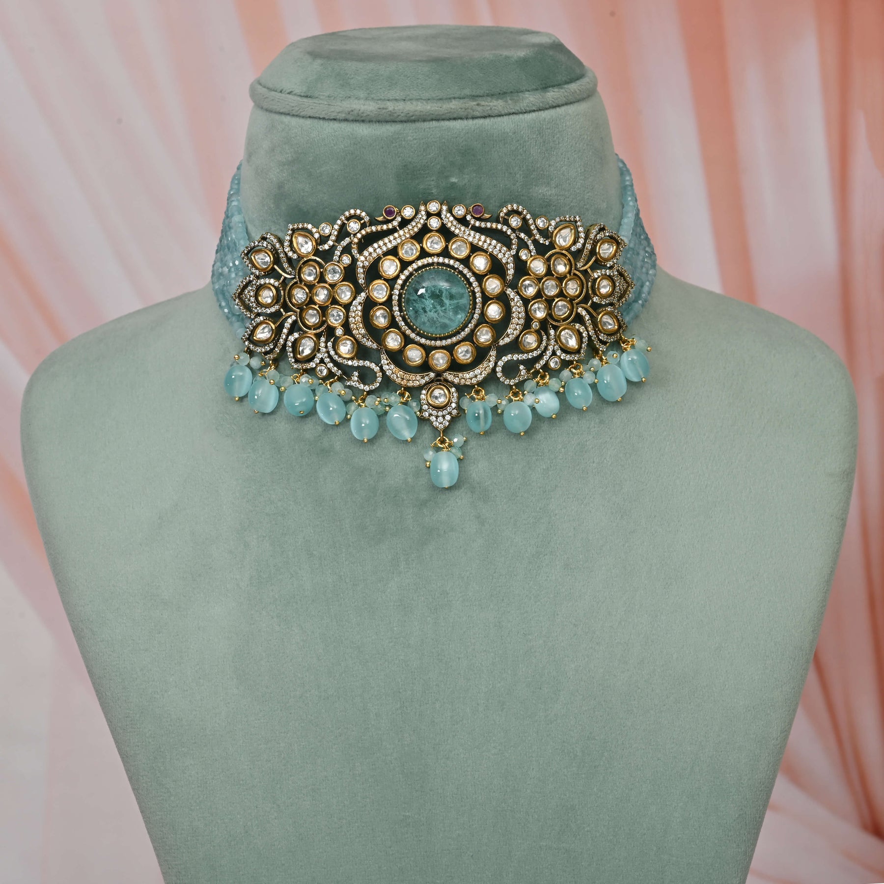 Meticulously hand-crafted Victorian beads choker featuring an exquisite combination of genuine CZ stones and premium moissanite. This luxurious piece showcases exceptional artisanship with its authentic Victorian-inspired design, offering sophisticated elegance for discerning collectors. The precise stone arrangement creates optimal light reflection, elevating any formal ensemble.