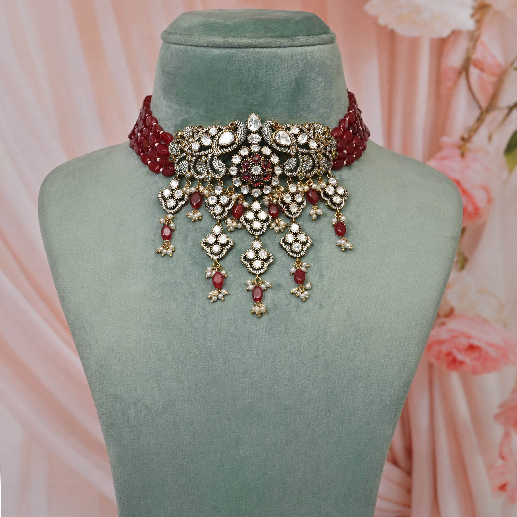 Meticulously hand-crafted Victorian beads choker featuring premium moissanite stone and genuine CZ stones. This elegant accessory combines historical inspiration with modern luxury, creating a sophisticated statement piece that elevates any ensemble with its refined craftsmanship and timeless appeal.