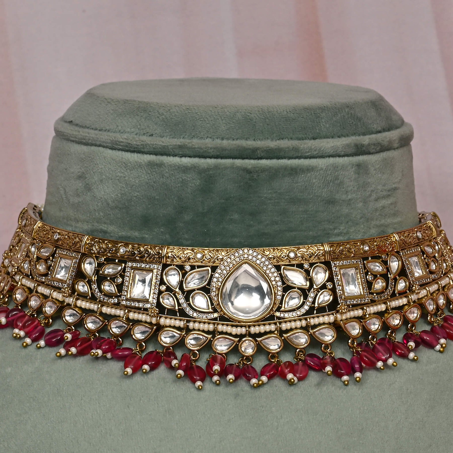 This Victorian choker set showcases expert craftsmanship with a unique, one-of-a-kind design. Featuring real CZ and moissanite stones, it offers the brilliance and sparkle of genuine diamonds. Delicately accented with dangling pearls, this handcrafted piece combines timeless elegance with exceptional quality, perfect for those seeking a sophisticated statement accessory.