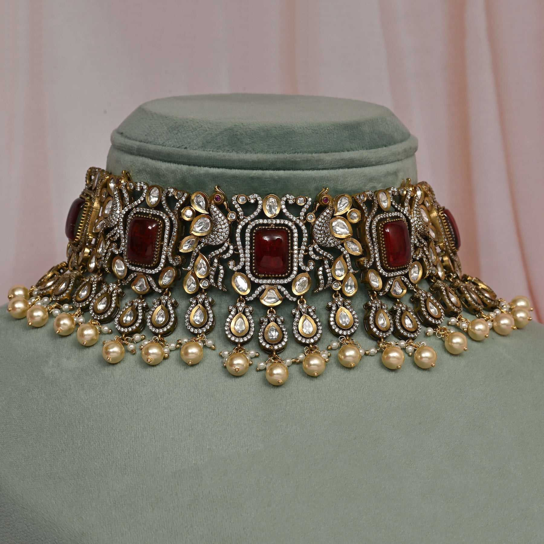 This Victorian choker set showcases expert craftsmanship with a unique, one-of-a-kind design. Featuring real cubic zirconia and moissanite stones, it offers the brilliance and sparkle of genuine diamonds. Delicately dangling pearls add a touch of timeless elegance, making this handcrafted piece a stunning statement for any special occasion.