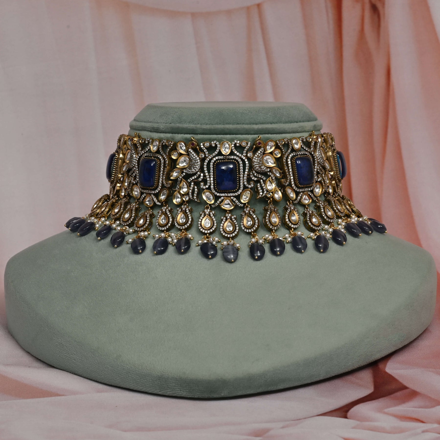 This Victorian choker set showcases expert craftsmanship with a unique, one-of-a-kind design. Featuring real cubic zirconia and moissanite stones, it offers the brilliance and sparkle of genuine diamonds. Delicately accented with dangling pearls, this handcrafted piece combines timeless elegance with exceptional detail, making it a distinguished addition to any fine jewelry collection.