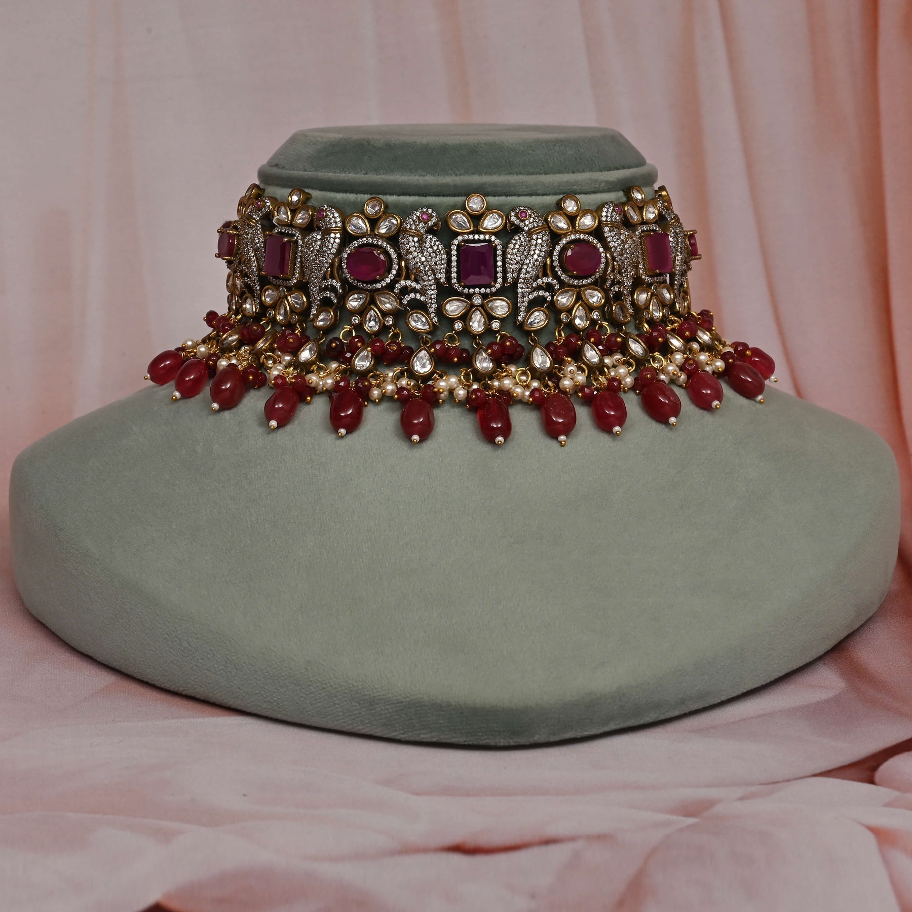 This Victorian choker set showcases expert craftsmanship with a unique, one-of-a-kind design. Featuring real CZ and moissanite stones, it offers the brilliance and sparkle of genuine diamonds. Delicately accented with dangling pearls, this handcrafted piece combines timeless elegance with exceptional quality, making it a standout addition to any fine jewelry collection.