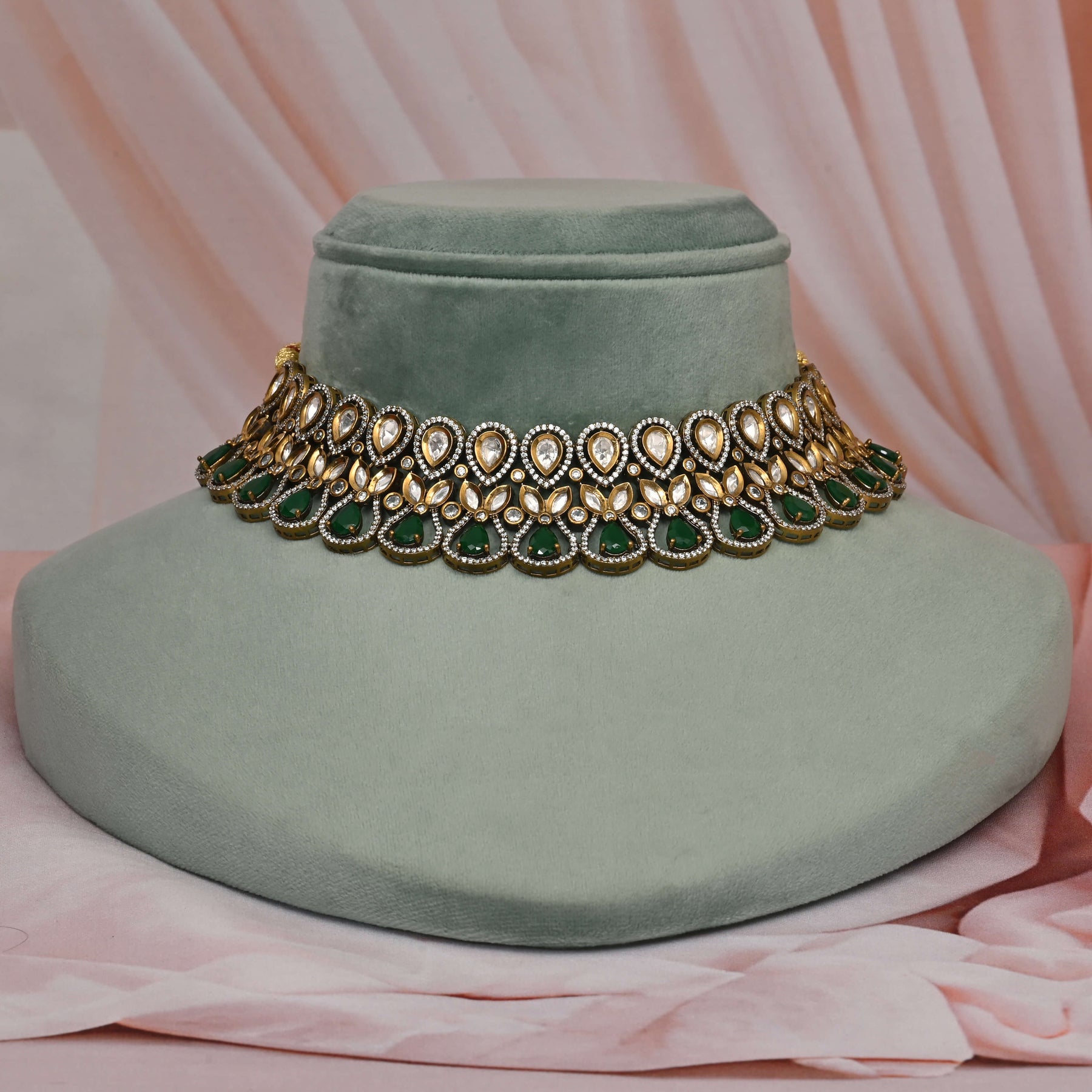 Meticulously hand-crafted Victorian beads choker featuring an exquisite combination of genuine CZ stones, premium moissanite, and semi-precious emeralds. This luxury piece balances historical elegance with contemporary craftsmanship, creating a sophisticated statement accessory that elevates both traditional and modern ensembles.