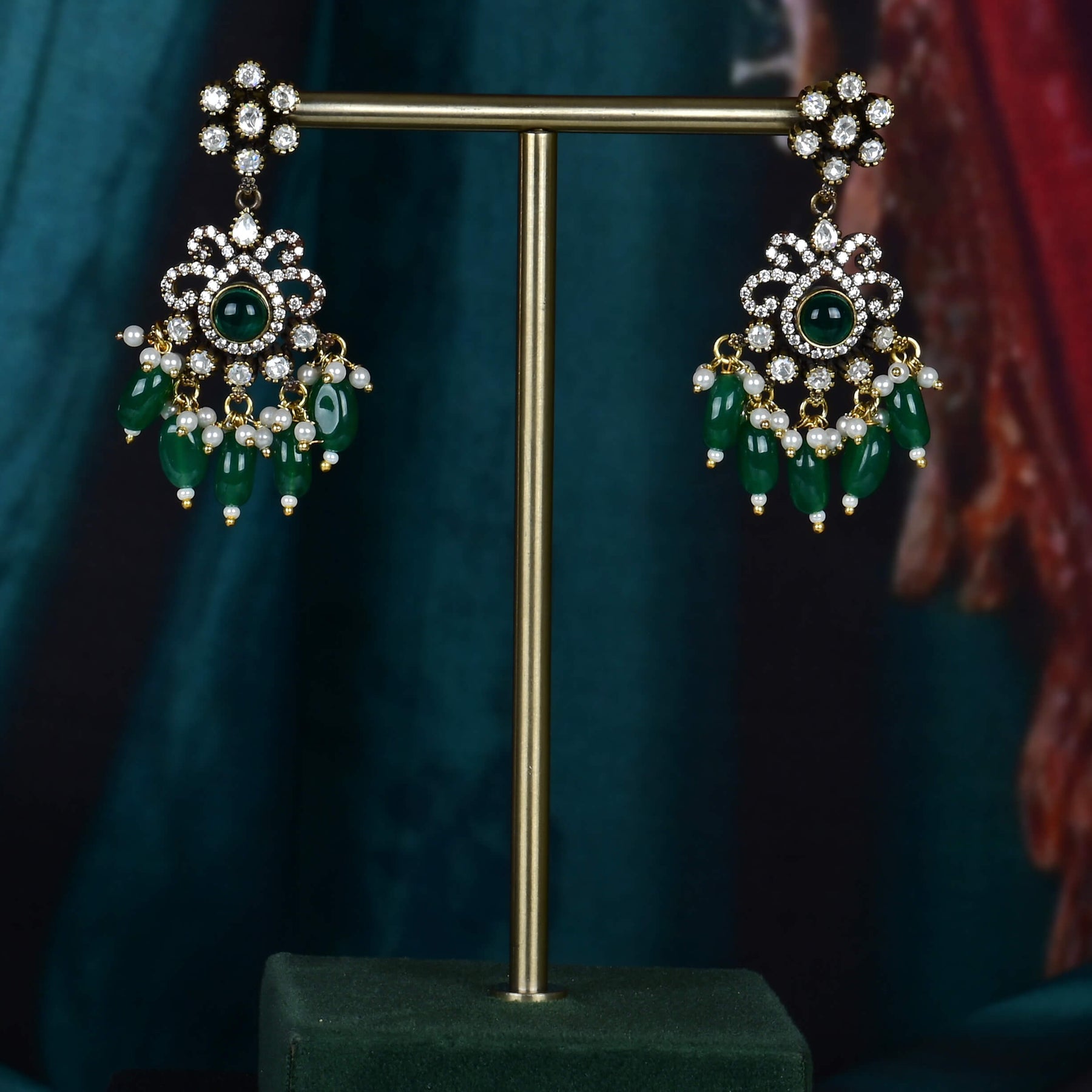 This exquisite Beads Victorian necklace set features meticulously handcrafted design, showcasing genuine CZ and moissanite stones. Each piece is uniquely crafted, offering a one-of-a-kind elegance that combines timeless Victorian charm with modern brilliance. Perfect for those seeking expert craftsmanship and distinctive style.