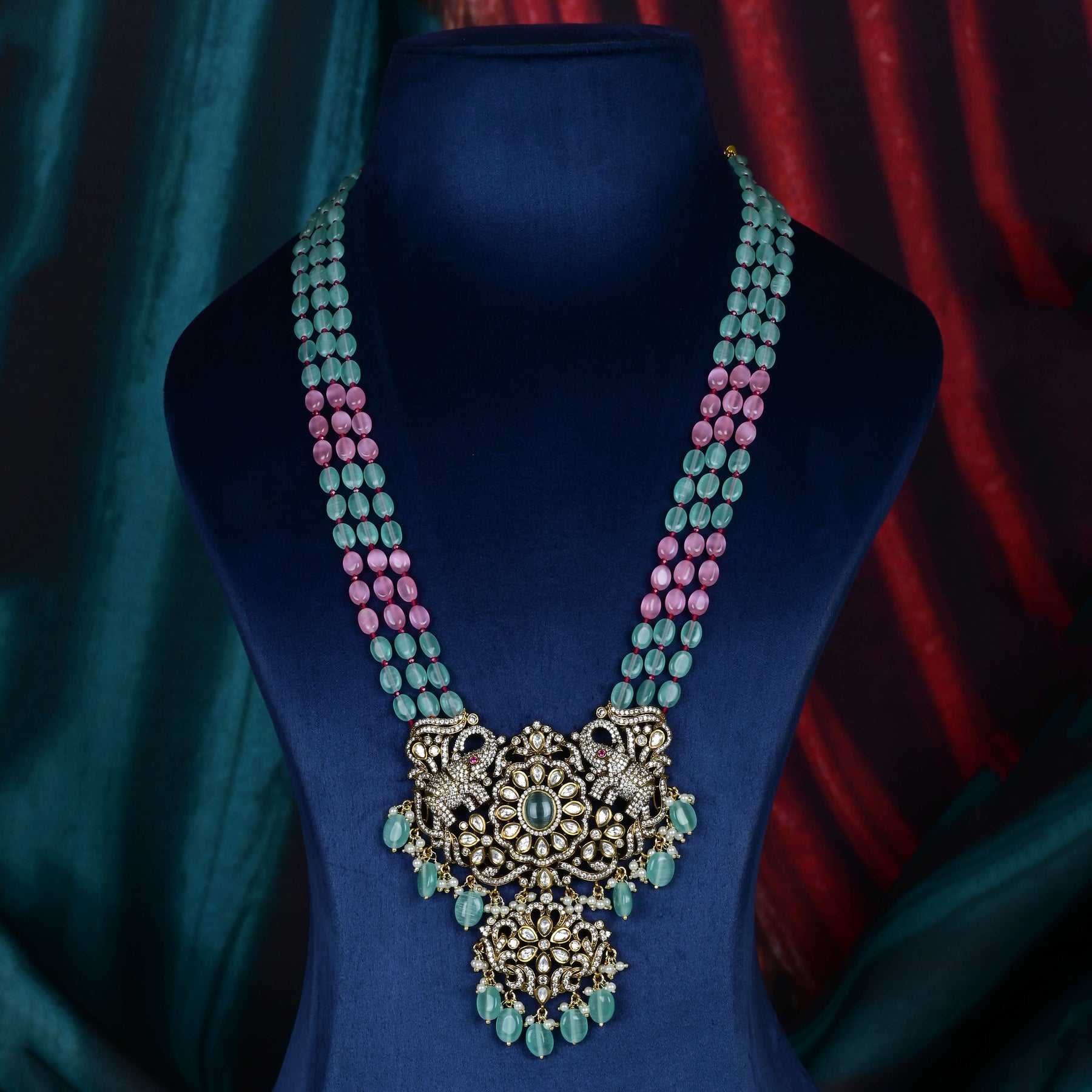 This exquisite Beads Victorian necklace set showcases a unique handcrafted design, featuring genuine CZ and moissanite stones. Each piece is meticulously crafted to offer a one-of-a-kind elegance, blending timeless Victorian charm with modern brilliance. Ideal for those seeking a distinctive accessory that combines expert craftsmanship with enduring beauty.