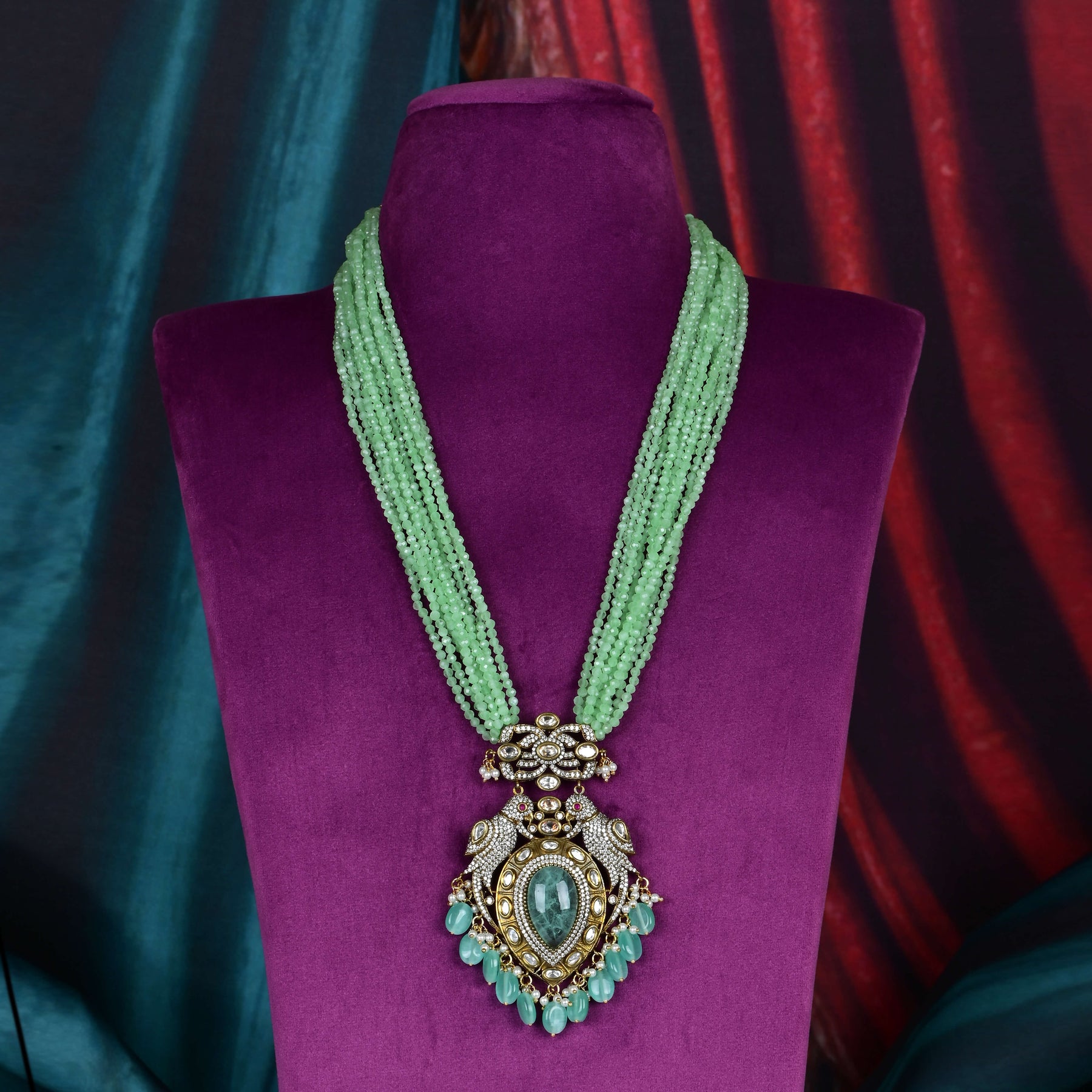 This exquisite Beads Victorian necklace set features meticulously handcrafted design, showcasing genuine CZ and moissanite stones. Each piece is uniquely crafted, offering a one-of-a-kind elegance that blends timeless Victorian charm with modern brilliance. Perfect for those seeking expert craftsmanship and distinctive style.