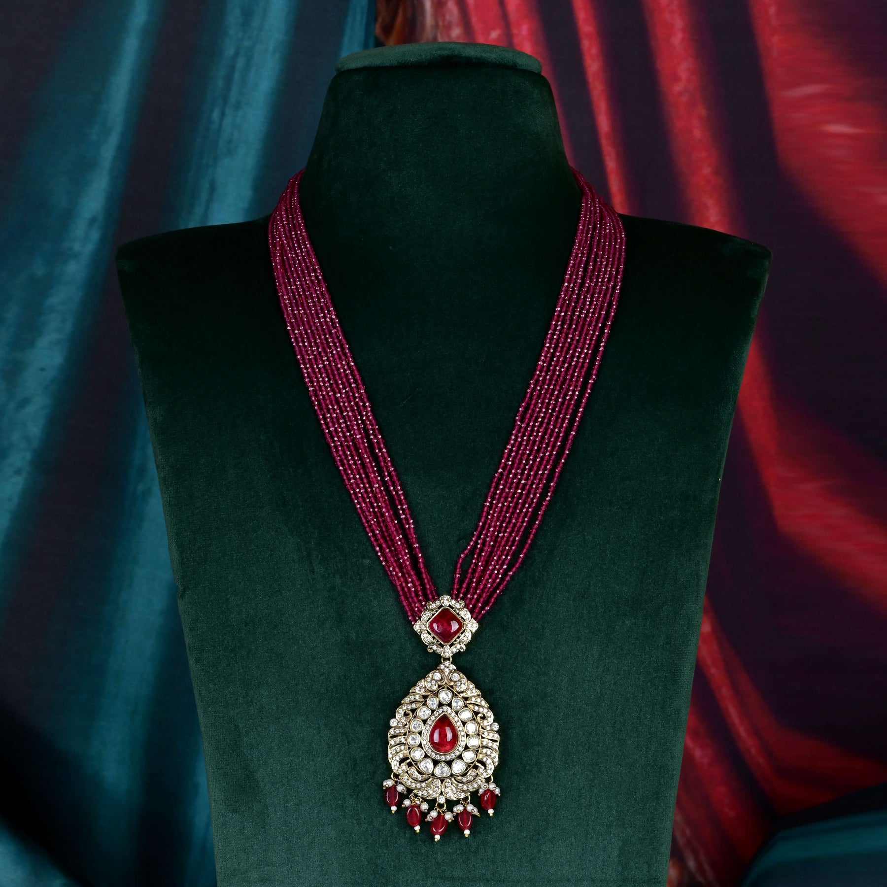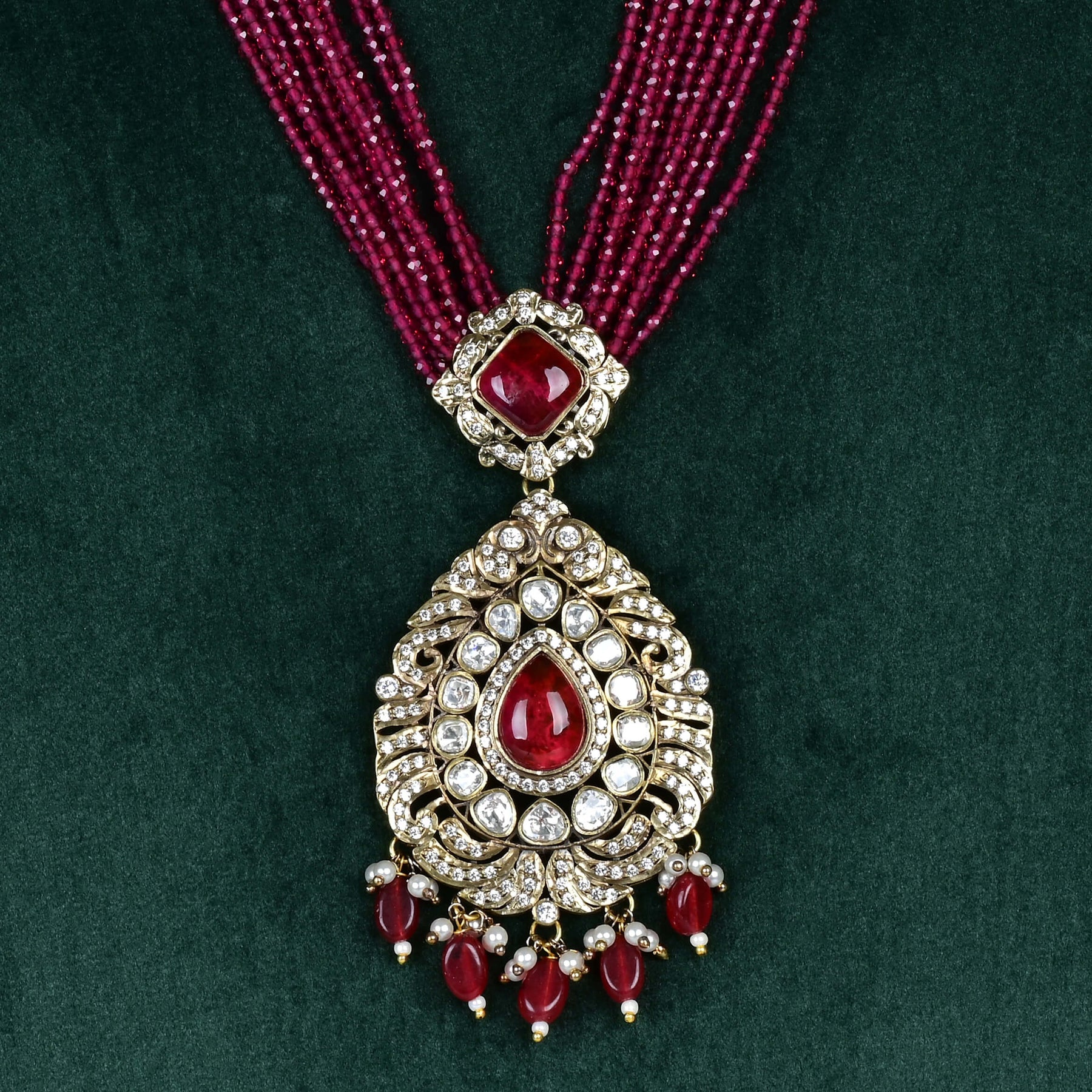 This exquisite Beads Victorian necklace set features meticulously handcrafted design, showcasing genuine CZ and moissanite stones. Each piece is uniquely crafted, offering a one-of-a-kind elegance that combines timeless Victorian charm with modern brilliance. Perfect for those seeking expert craftsmanship and distinctive style.