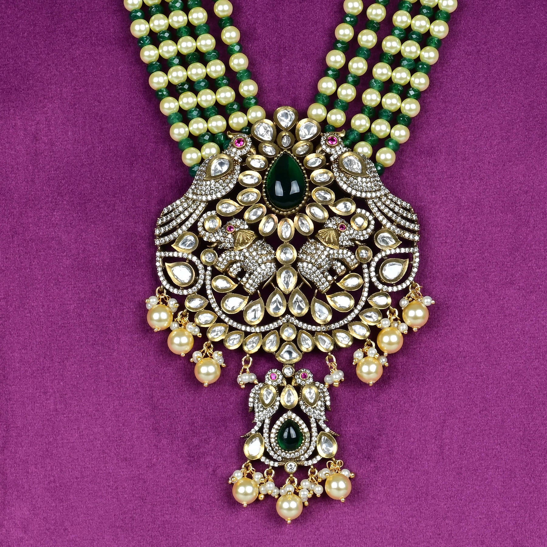 This exquisite Beads Victorian necklace set features a unique handcrafted design, combining real CZ and moissanite stones for exceptional brilliance. Each piece is meticulously crafted to offer a one-of-a-kind accessory that elevates any ensemble with timeless elegance and expert artistry.