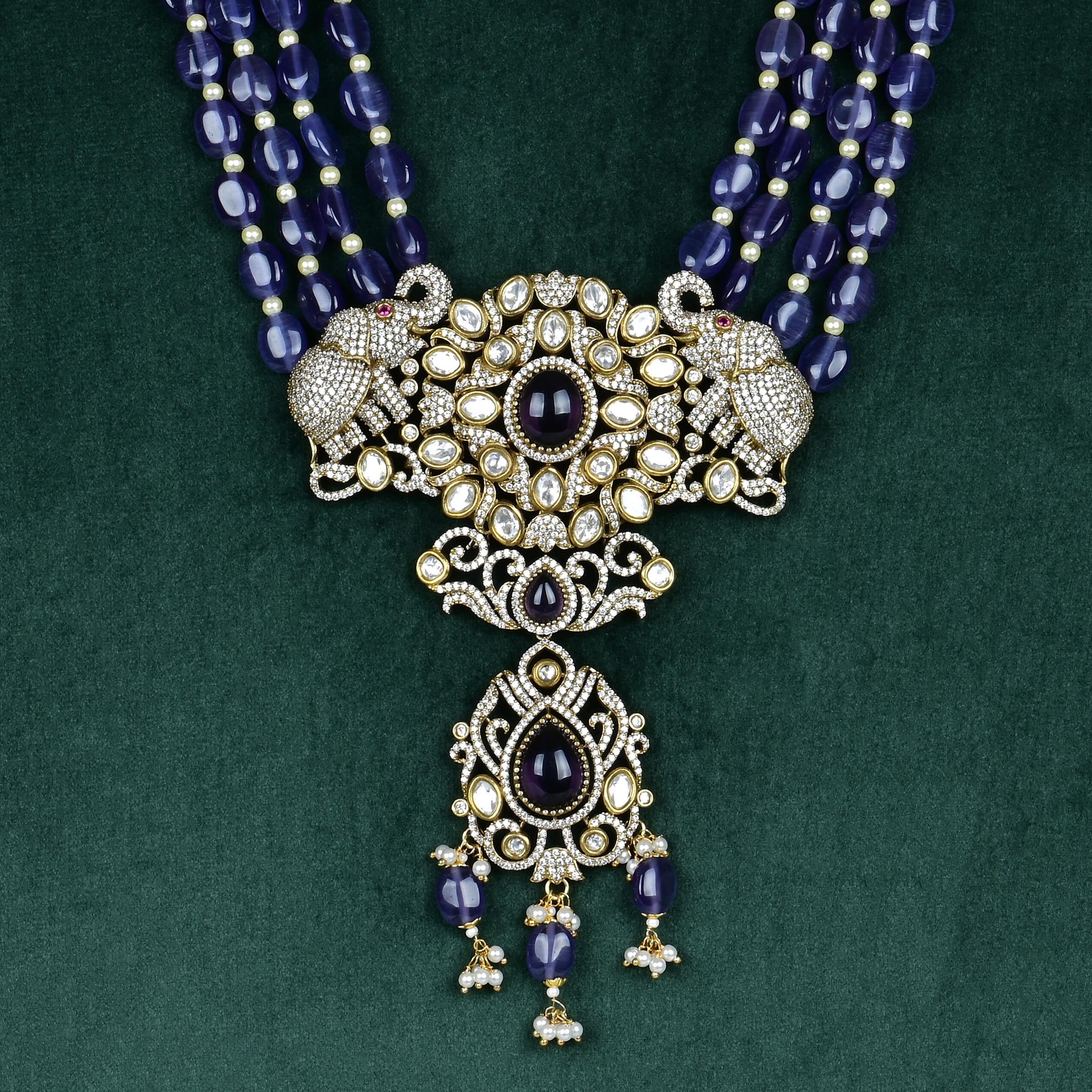 This exquisite Beads Victorian necklace set showcases a unique, handcrafted design featuring genuine CZ and moissanite stones. Each piece is meticulously crafted to offer a one-of-a-kind elegance, blending timeless Victorian charm with modern brilliance. Ideal for those seeking a distinctive accessory that combines expert craftsmanship with enduring beauty.
