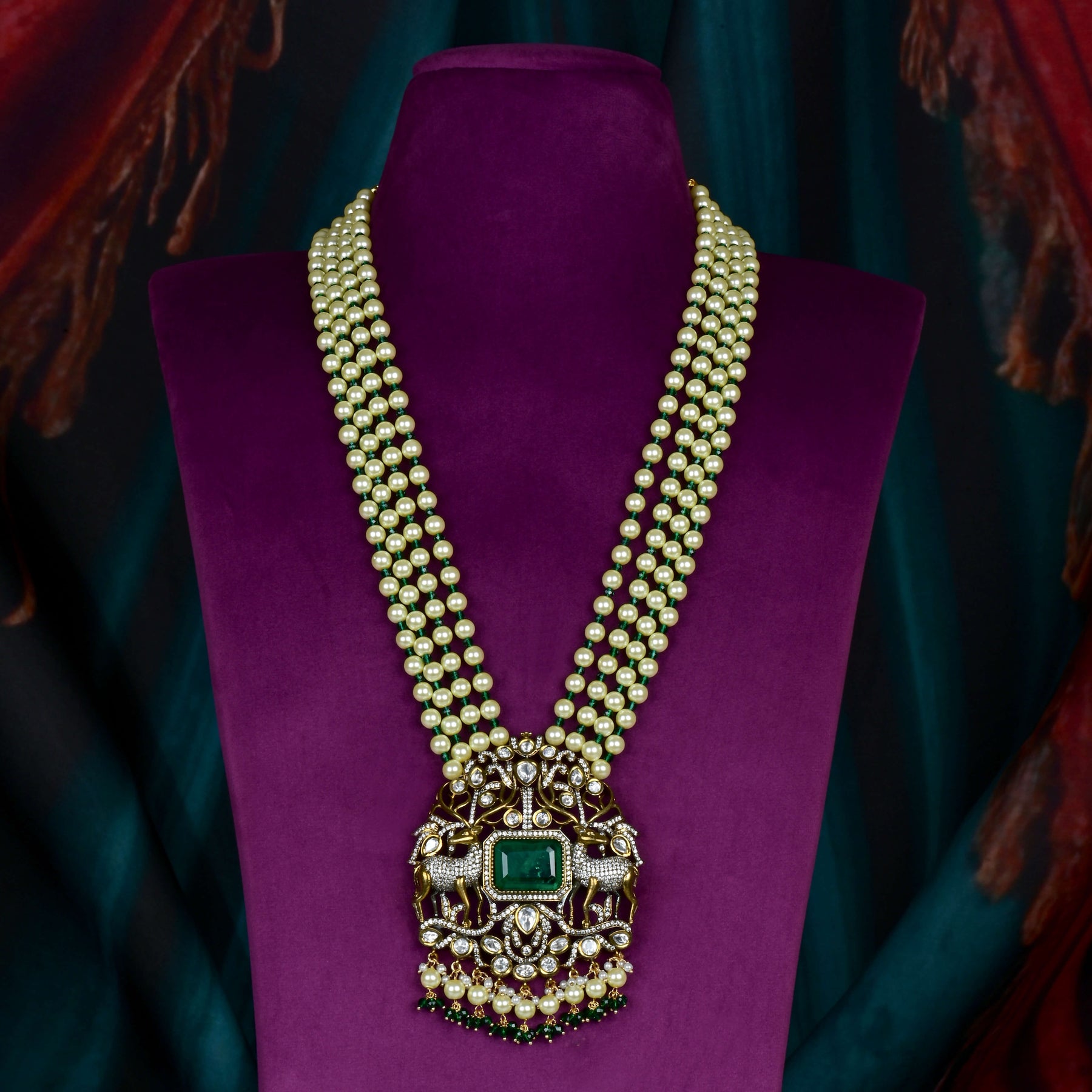 This exquisite Beads Victorian necklace set features a unique handcrafted design, combining real CZ and moissanite stones for exceptional brilliance. Each piece is meticulously crafted to offer a one-of-a-kind accessory that elevates any ensemble with timeless elegance and expert artistry. Perfect for those who appreciate fine craftsmanship and distinctive style.