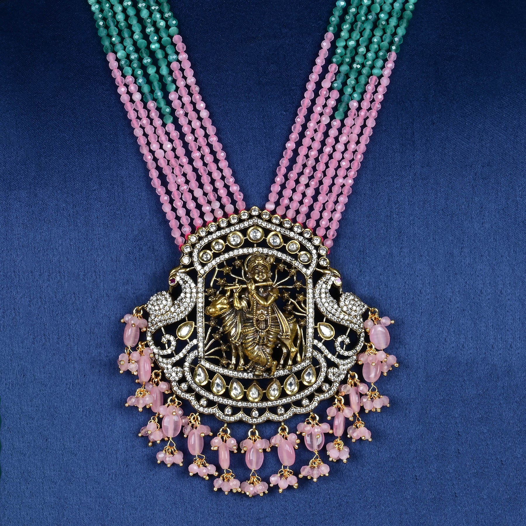 This Beads Victorian Necklace set showcases expert craftsmanship with its unique, one-of-a-kind design. Handcrafted to perfection, it features genuine CZ and moissanite stones that offer exceptional brilliance and durability. Ideal for those who appreciate timeless elegance combined with meticulous artistry.