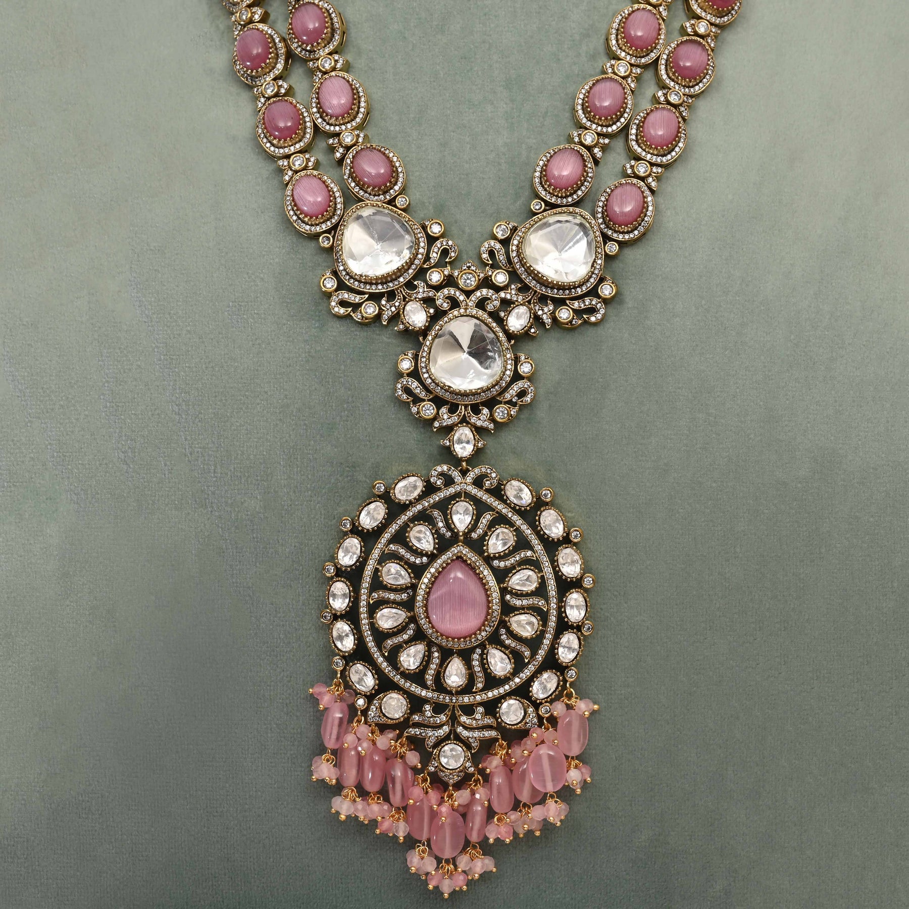This Victorian Necklace Set showcases expert craftsmanship with a unique, one-of-a-kind design. Featuring real CZ and moissanite stones, it offers the brilliance and sparkle of genuine diamonds. Delicately accented with dangling pearls, this handcrafted piece combines timeless elegance with exceptional quality, making it a distinguished addition to any fine jewelry collection.
