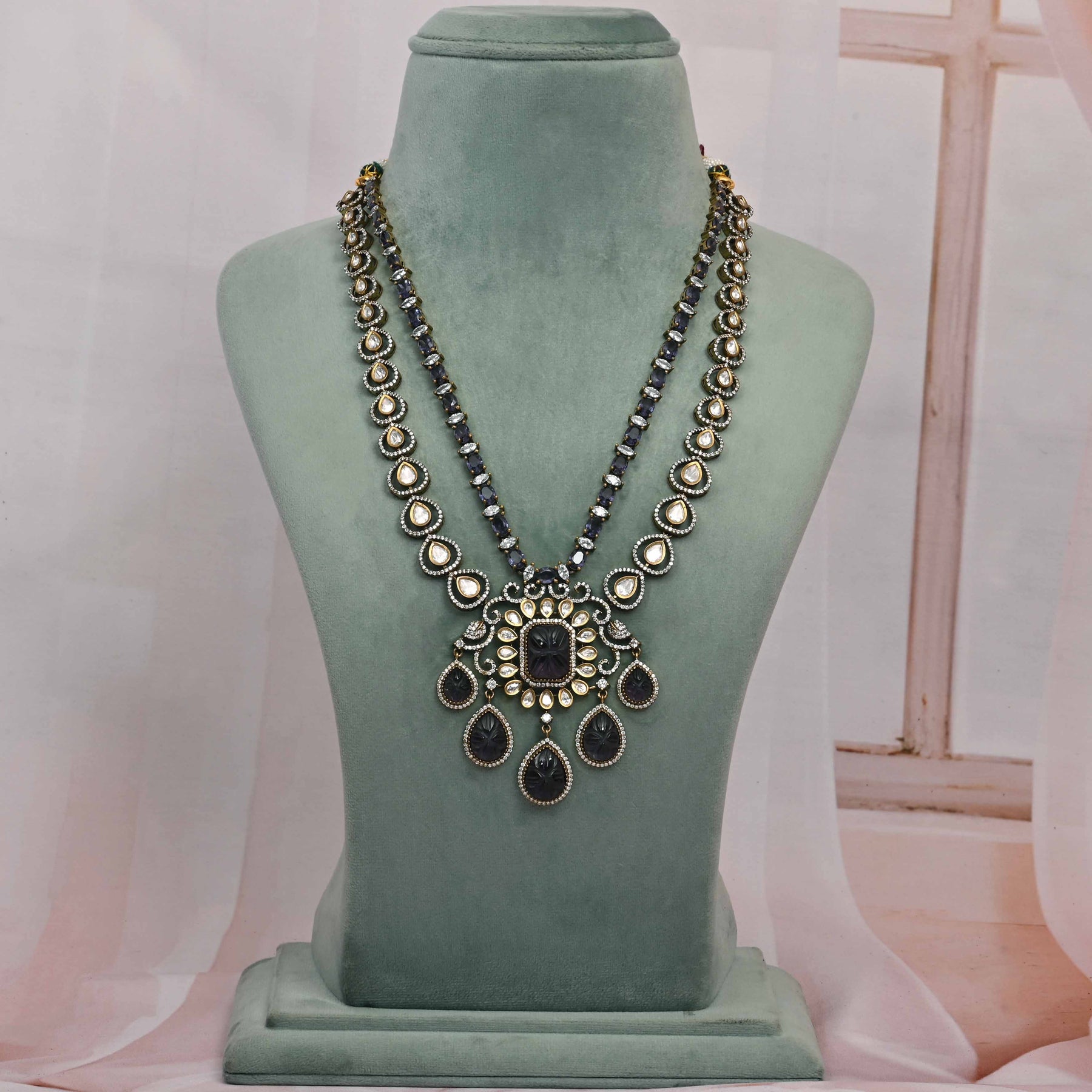 This Victorian necklace set showcases exquisite craftsmanship with a unique, one-of-a-kind design. Featuring real cubic zirconia and moissanite stones, it offers the brilliance and sparkle of genuine diamonds. Delicately accented with dangling pearls, this handcrafted piece combines timeless elegance with exceptional detail, making it a distinguished addition to any fine jewelry collection.